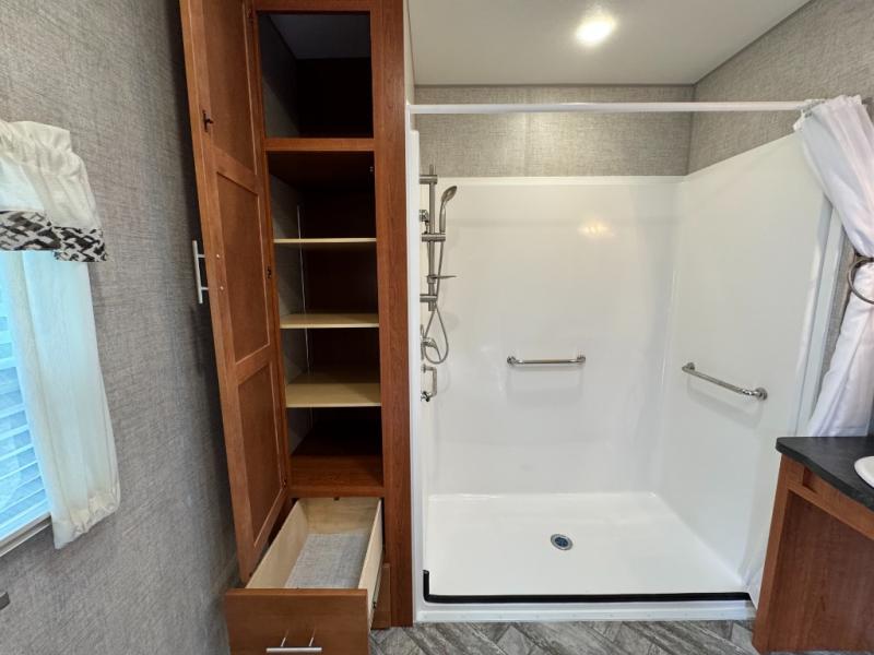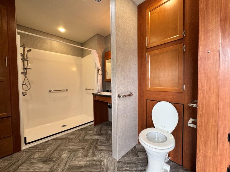 handicap accessible destination trailer for sale • ADA compliant RV for sale • wheelchair accessible camper • destination trailer with roll-in shower • accessible park model trailer • Hy-Line 38 Premier for sale • 2025 HL Enterprise destination trailer
