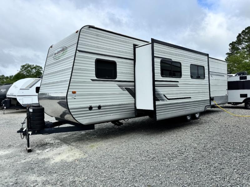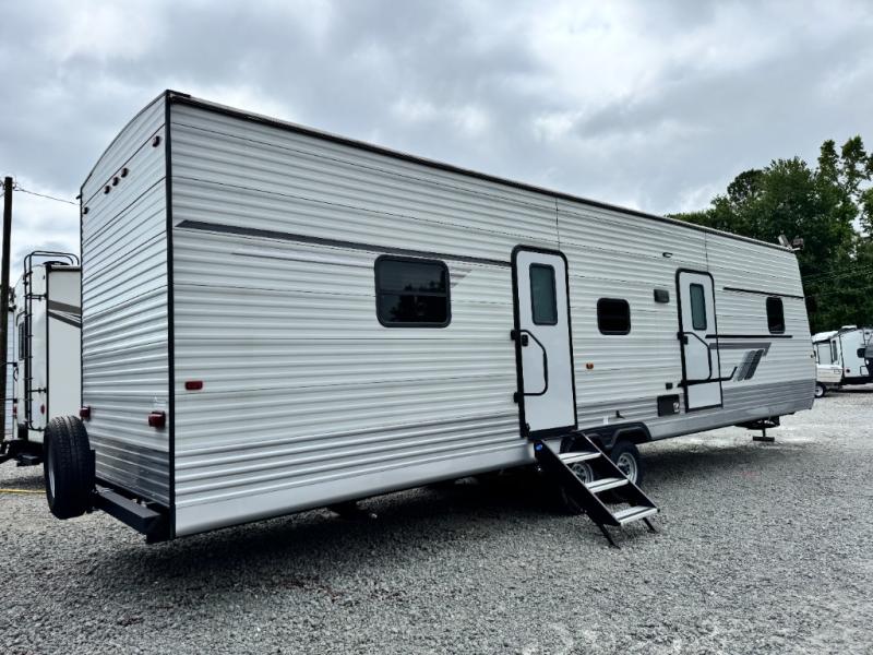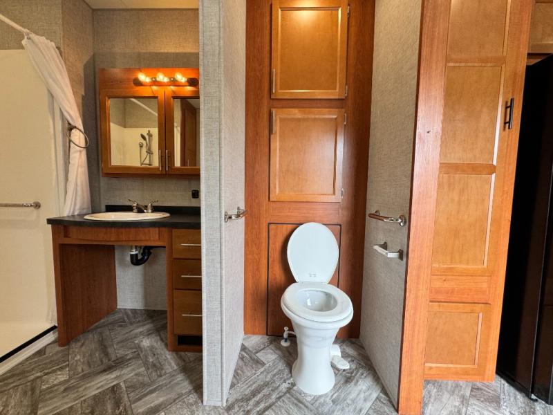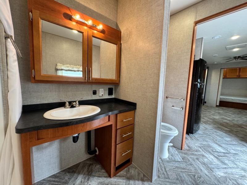 This Hy-Line 38 Premier has been gently used but it has never been slept in. It’s exceptionally clean and move-in ready — a rare find for anyone wanting an accessible destination trailer without the typical wear that comes with used units.