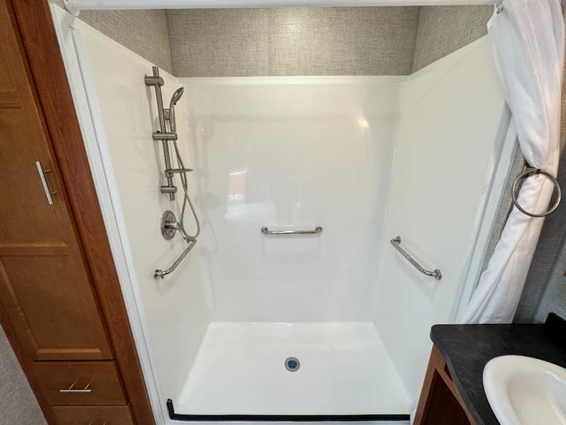 - Roll-in shower built for real accessibility