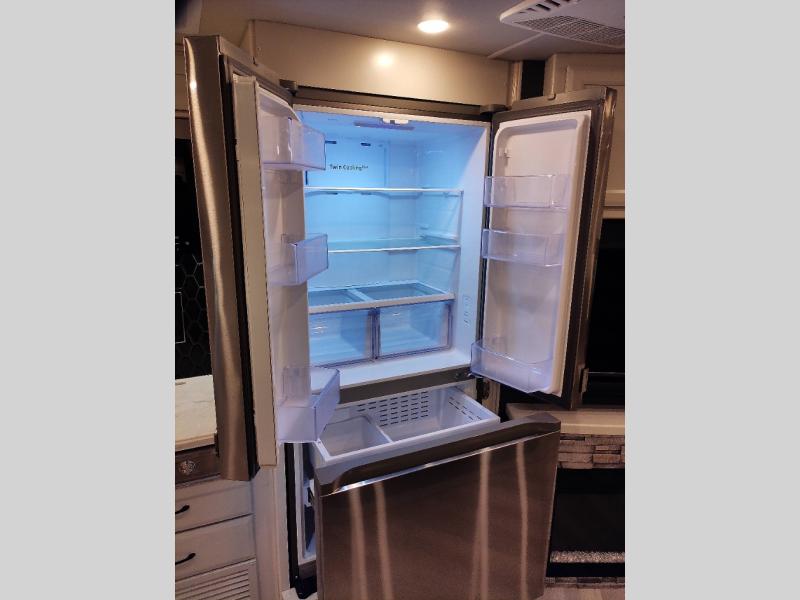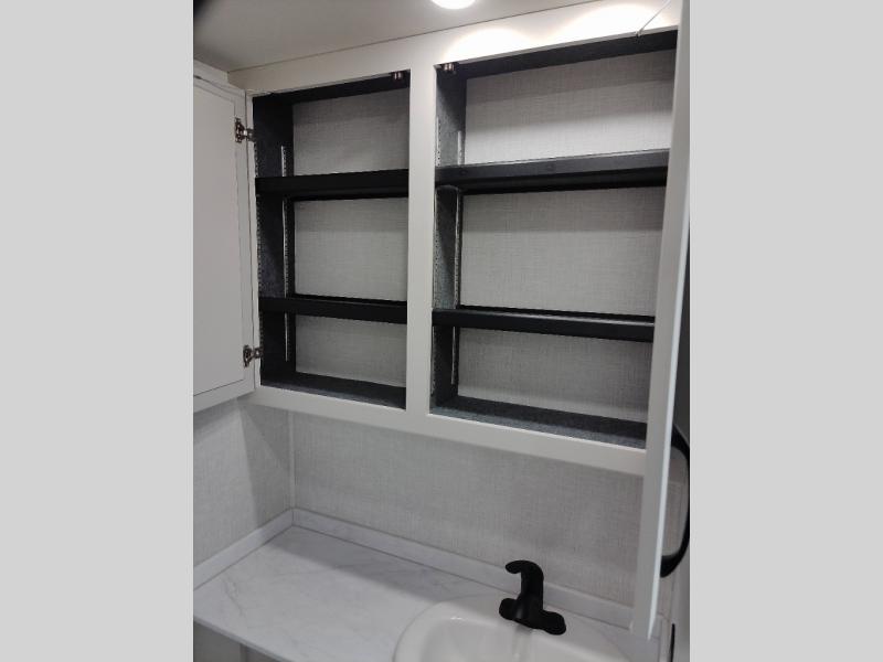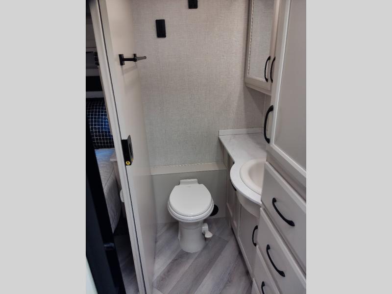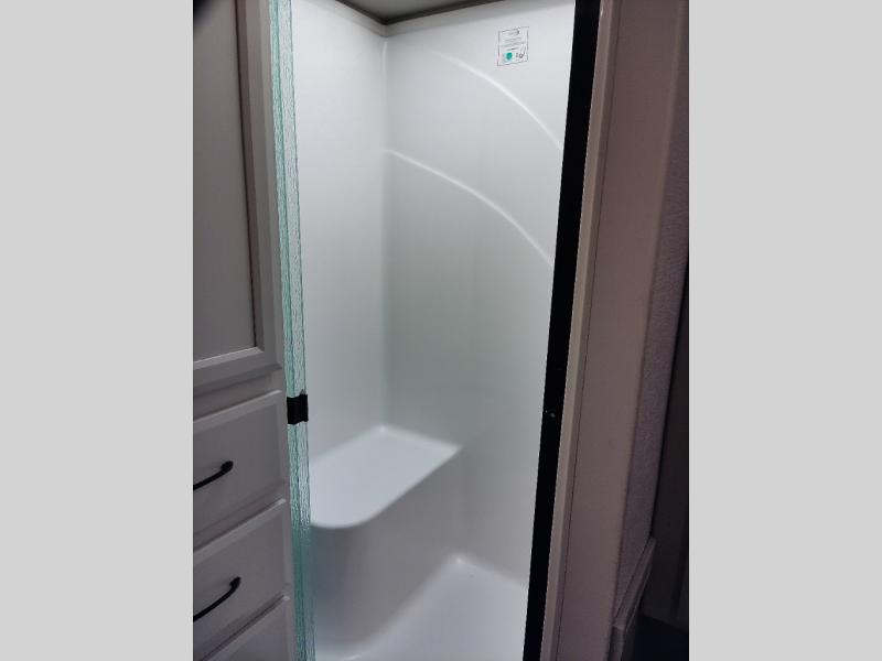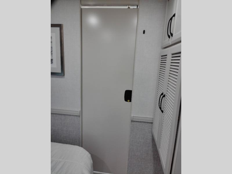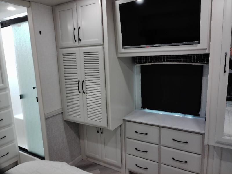 Traveling with a larger group is easier than ever in this coach with a bath and a half, two slides, plus sleeping space for five. And you can choose the optional Hide-A-Loft drop-down overhead bunk if you have more guests tag along! You can make breakfast in the morning on the three burner cooktop, or use the convection microwave provided. Your crew can dine at the Rest EZ booth dinette and relax on the jack-knife sofa before heading out for the day. This model also includes a master bedroom with its own LED TV, dual bedroom wardrobes, plus a king bed slide out with storage space for a CPAP if needed. This model has a GVWR of 22,000 lbs., but is also available with a GVWR of 24,000 lbs.; see dealer for more details!