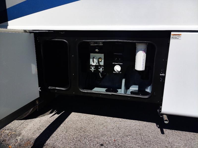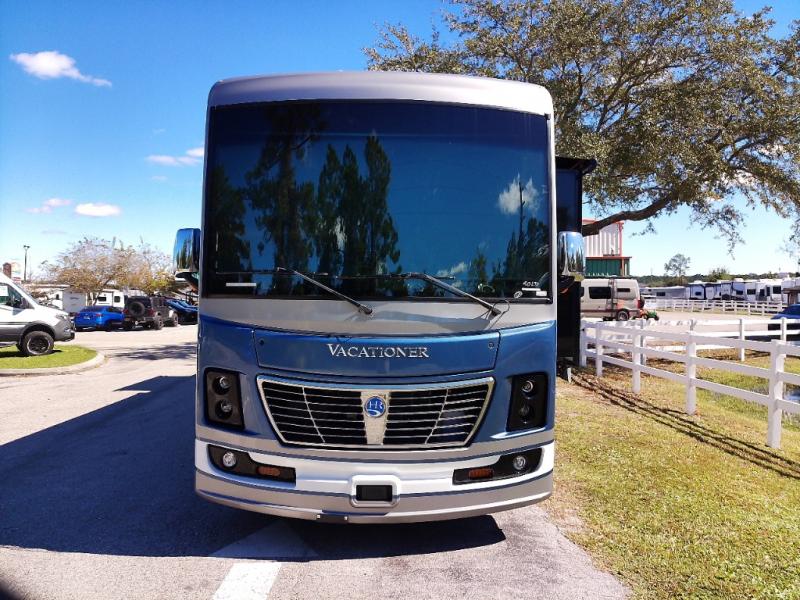 Escape the boring for fun trips in a Vacationer Class A gas motorhome by Holiday Rambler. You can easily make this coach your home-away-from home with features such as dual A/C units, vinyl tile flooring, and stainless steel appliances. The bus-style luggage doors will make for easy unloading, and the automatic hydraulic leveling jacks make setting up camp easier than ever. The Vacationer is constructed with a Powerlock System with interlocking floor, walls, and roof, plus premium gel exterior Vetrosina fiberglass skin with no wood substrate for added durability. Each model includes an automotive style dash with dual monitors, and MultiPlex house controls that can easily be controlled by your smart phone or tablet. The list of standard features doesn't stop there. You'll have an environmentally friendly 100W solar panel, an exterior entertainment center, large holding tank capacities, and so much more!