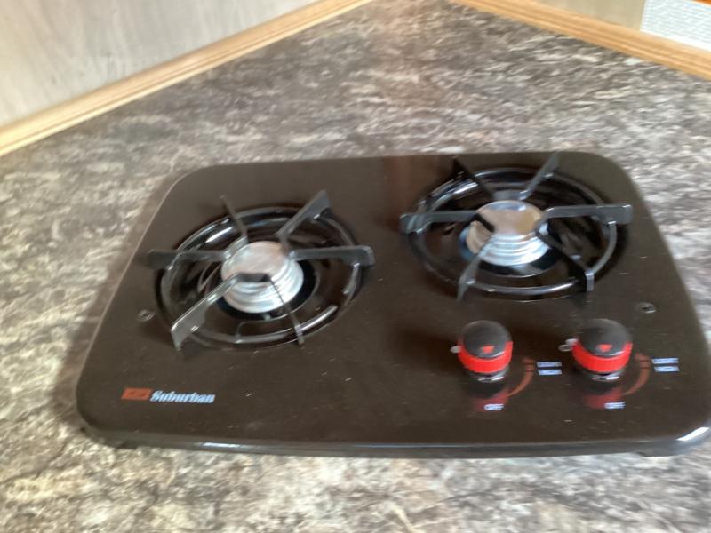 Equipped with a three-burner cooktop and oven, LED lighting, stereo system, and LED-lit holes—ready for trout season or a summer getaway. -