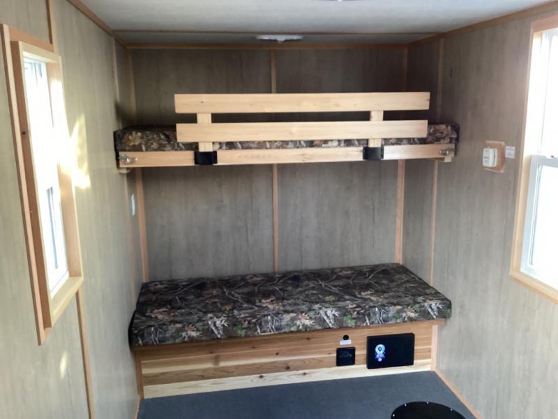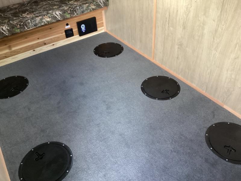 Includes up to five LED-lit fishing holes, removable seating/sofa, and bunk(s) for meals or napping between toppings.