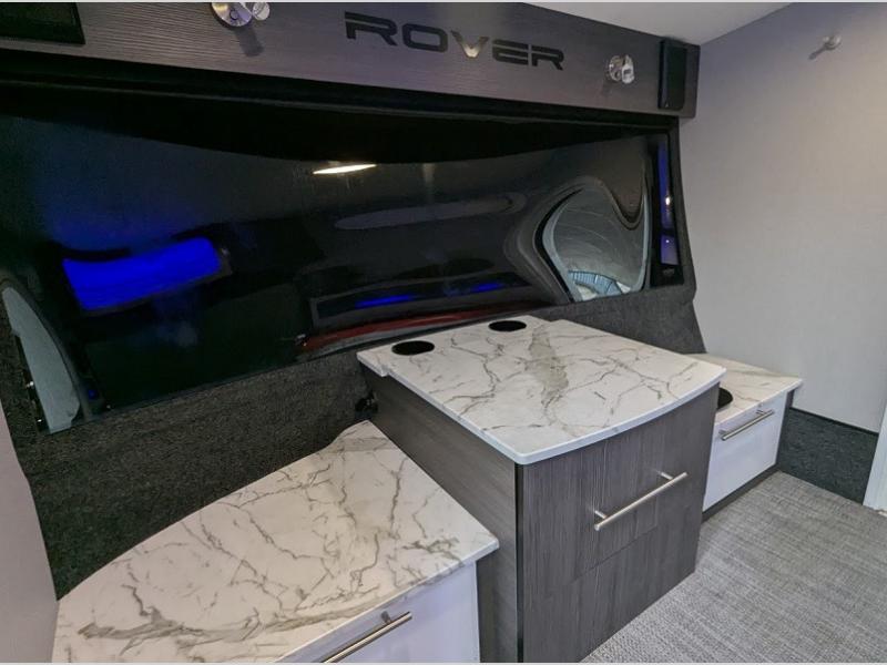Each Luna teardrop trailer by inTech RV is constructed with an all-aluminum, all-tube, cage frame, a one piece fiberglass roof, plus bubble foil insulation to provide a durable unit made to last. You will always stay cool with the 8,000 BTU A/C and the MaxxAir vent fan. Each model includes an outside kitchen with a 40qt. 12V cooler to store your cold food, a stainless steel cooktop, plus plenty of storage space for all your necessities. Inside, you'll enjoy the Infinity Woven flooring, two tinted windows with shades and screens, a Bluetooth stereo with four speakers and a 32" TV, plus USB ports and outlets to keep your phone and tablet charged. You'll appreciate the 1,775 lbs. to 1,850 lbs. dry weights for easy towing and the Rover Package that includes an aluminum tube rear bumper, rugged decals, integrated side steps, and an adjustable roof rack for luggage or kayaks!
