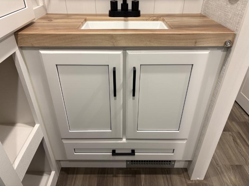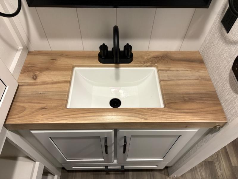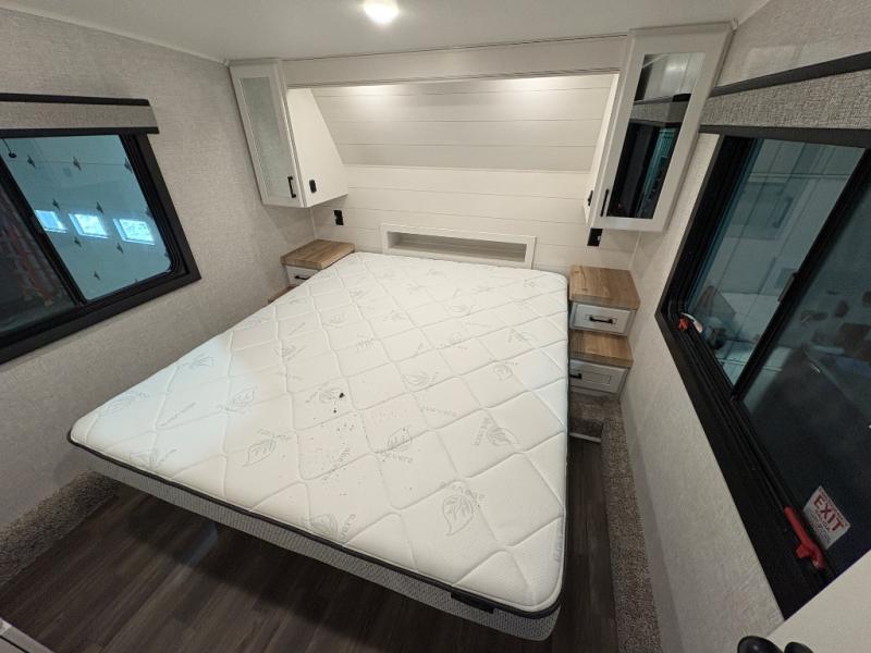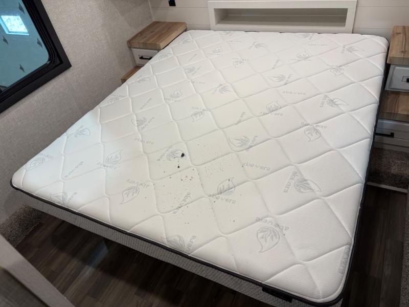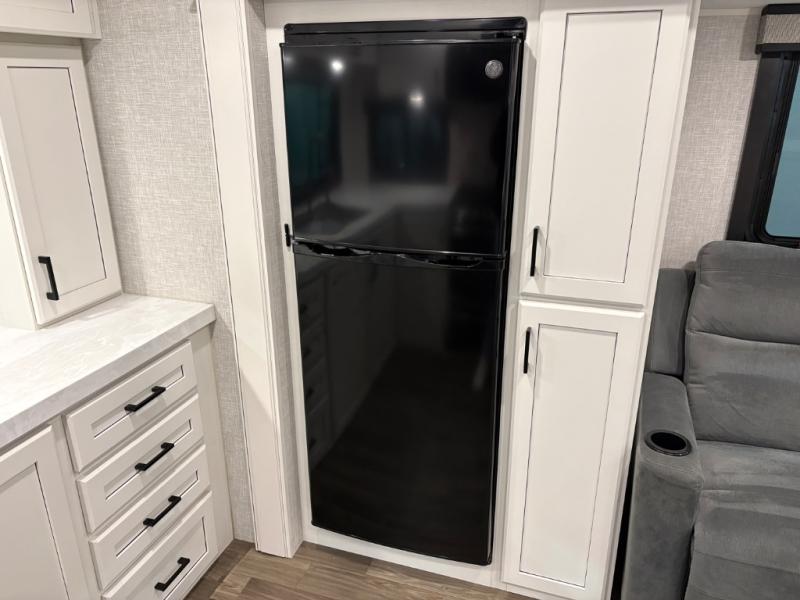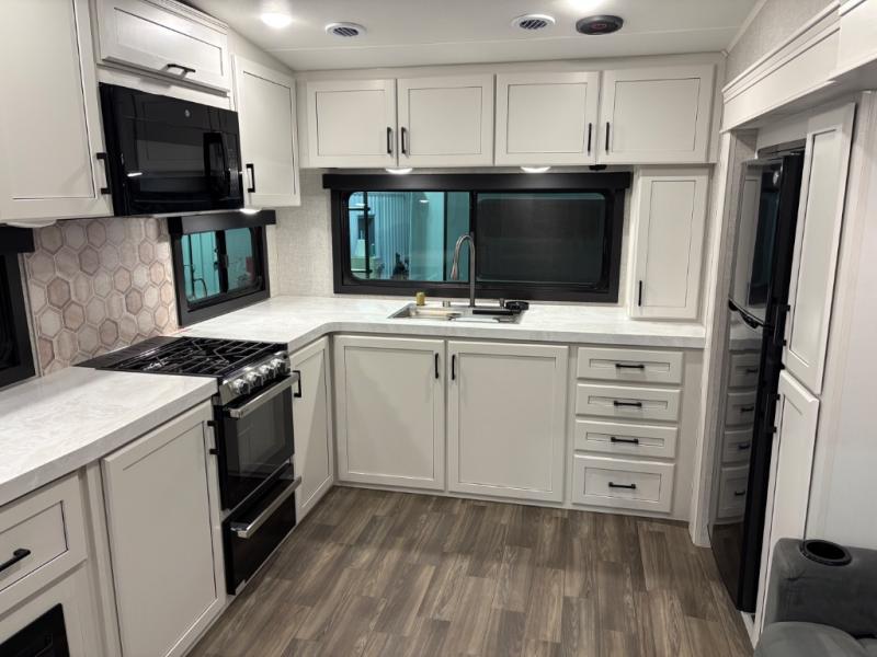 With any Eagle HT fifth wheel or travel trailer by Jayco you will enjoy a smooth drive thanks to the 4 Star Handling Package and MORryde CRE-3000 rubberized suspension. The Customer Value Package includes amenities that are sure to make camping easier than ever, like the 60K on-demand water heater, Keyed-Alike lock system, 15,000 BTU "Whisper Quiet" A/C, and more. Handcrafted and glazed door/drawer fronts will make your space feel more like home, along with residential vinyl flooring throughout, GE appliances, and blackout roller shades with reflective side throughout to keep the sun out when you want to sleep in. Each model also includes a NuVo H2O water treatment system with filters included, interior and exterior "Blue Sync" audio connect with MB Quart Sound for your TV and phone, and 100% no floor vents for added comfort and convenience!
