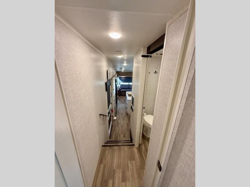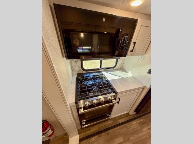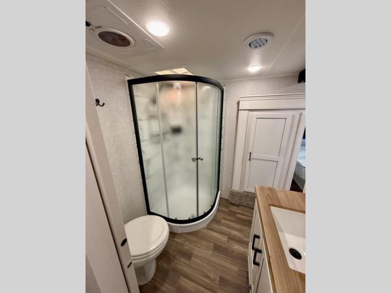 With any Eagle HT fifth wheel or travel trailer by Jayco you will enjoy a smooth drive thanks to the 4 Star Handling Package, Goodyear Endurance tires, and MORryde CRE-3000 rubberized suspension. The Customer Value Package includes amenities that are sure to make camping easier than ever, like the 60K on-demand water heater, Keyed-Alike lock system, 15,000 BTU "Whisper Quiet" A/C, and more. Handcrafted and glazed door/drawer fronts will make your space feel more like home, along with residential vinyl flooring throughout, GE appliances, and blackout roller shades with reflective side throughout to keep the sun out when you want to sleep in. Each model also includes a NuVo H2O water treatment system with filters included, interior and exterior "Blue Sync" audio connect with MB Quart Sound for your TV and phone, and 100% no floor vents for added comfort and convenience!
