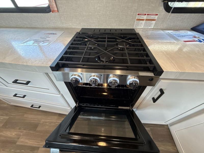 With any Eagle HT fifth wheel or travel trailer by Jayco you will enjoy a smooth drive thanks to the 4 Star Handling Package, Goodyear Endurance tires, and MORryde CRE-3000 rubberized suspension. The Customer Value Package includes amenities that are sure to make camping easier than ever, like the 60K on-demand water heater, Keyed-Alike lock system, 15,000 BTU "Whisper Quiet" A/C, and more. Handcrafted and glazed door/drawer fronts will make your space feel more like home, along with residential vinyl flooring throughout, GE appliances, and blackout roller shades with reflective side throughout to keep the sun out when you want to sleep in. Each model also includes a NuVo H2O water treatment system with filters included, interior and exterior "Blue Sync" audio connect with MB Quart Sound for your TV and phone, and 100% no floor vents for added comfort and convenience!