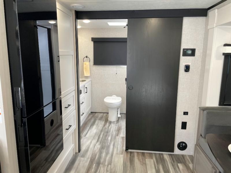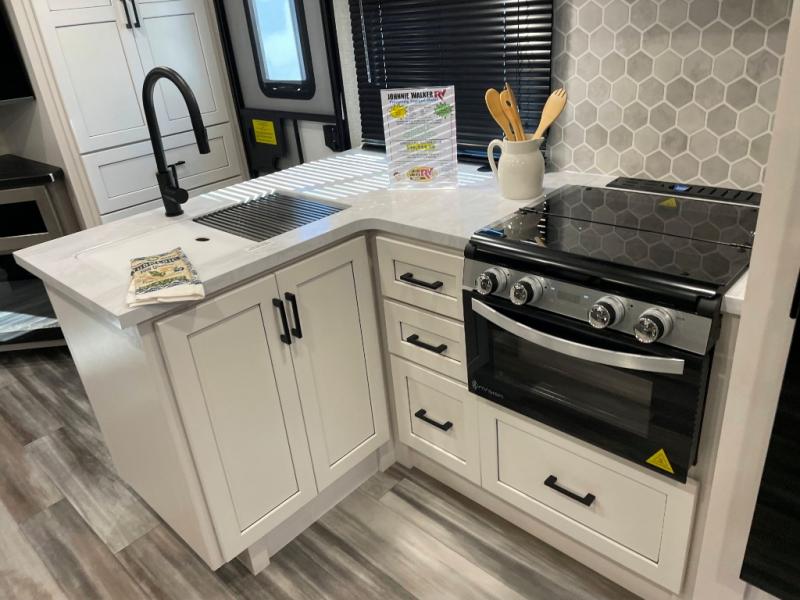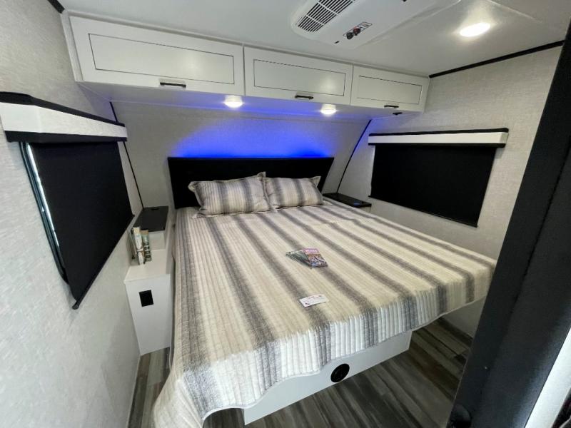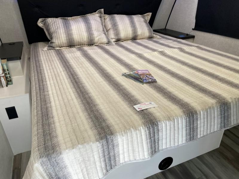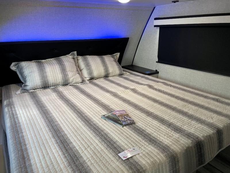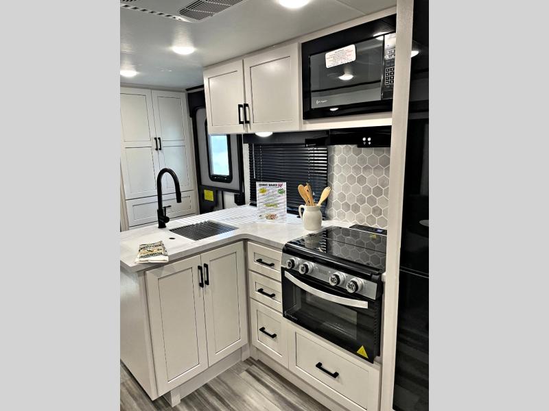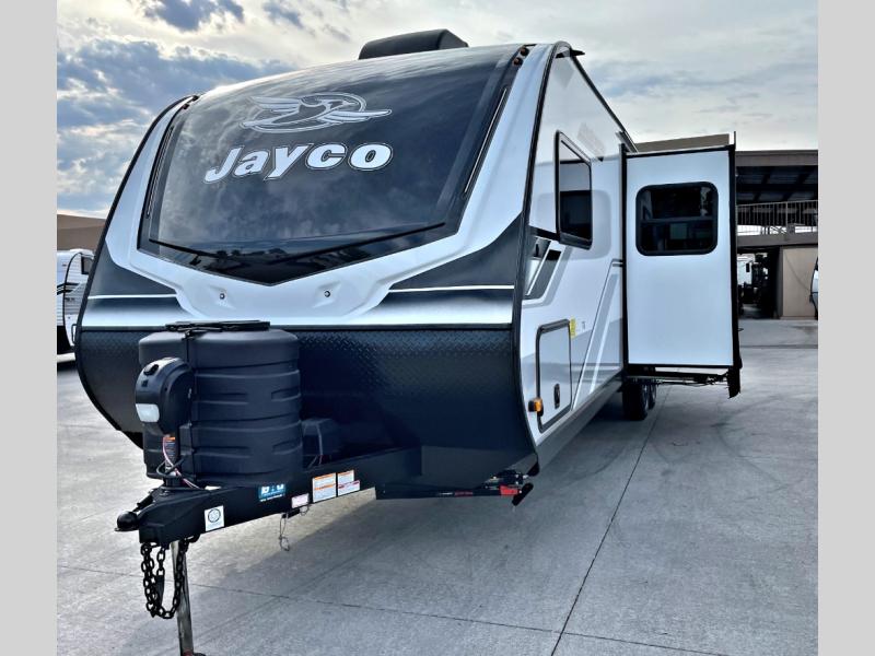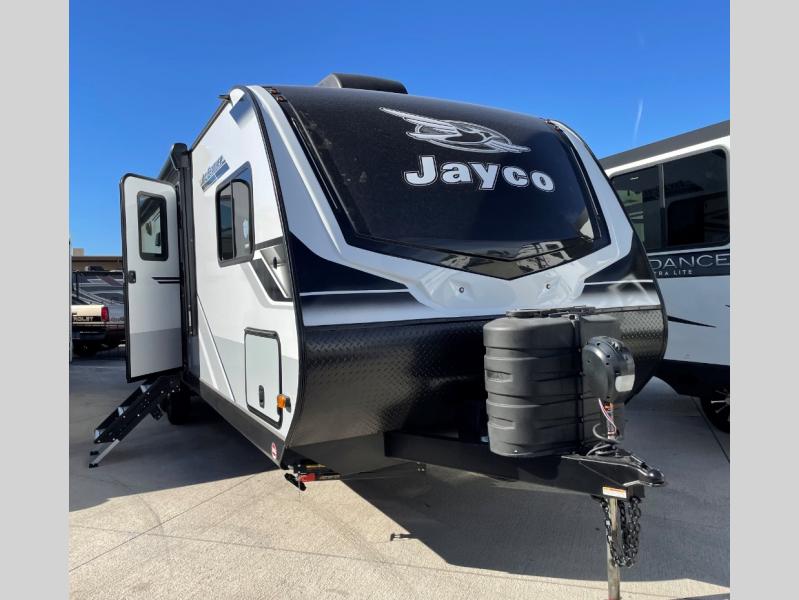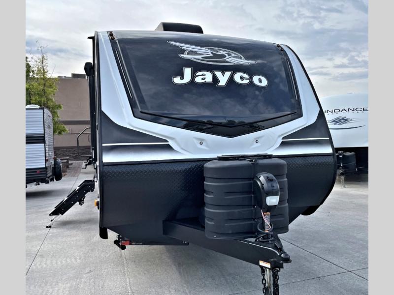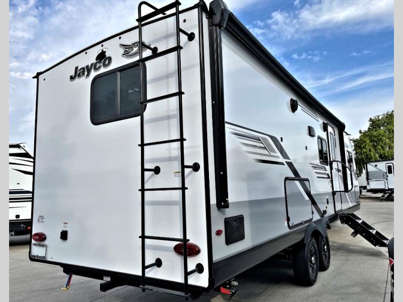 With any Jay Feather travel trailer by Jayco, you will enjoy lightweight towing, convenient exterior amenities, and at-home comforts inside! The Overlander 1 Solar Package included within the Jay Sport Package comes with a 200W solar panel and a 30-amp digital controller so you can enjoy some off-grid camping. There is also a modern graphics package with a dual-colored sidewall, LCI Solid Step fold-down aluminum tread steps on the main entry door, and Climate Shield 0 -100° F tested weather insulation package that will allow you to camp in all sorts of climates. The Customer Value Package will make time outdoors easier than ever with a power tongue jack and a Rock Solid stabilizer system, plus American-made nitro-filled Goodyear tires with self-adjusting electric brakes. More exterior features include a Keyed-Alike locking system, marine grade exterior speakers, a Magnum Truss roof system, and the list goes on! And we haven't even touched on the interior comforts, like the residential style seamless countertops and vinyl flooring throughout, decorative backsplash, handcrafted hardwood door/drawer fronts, and multiple USB charging ports to keep you going!