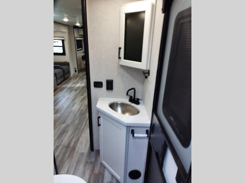 With any Jay Feather travel trailer by Jayco, you will enjoy lightweight towing, convenient exterior amenities, and at-home comforts inside! The Overlander 1 Solar Package included within the Jay Sport Package comes with a 200W solar panel and a 30-amp digital controller so you can enjoy some off-grid camping. There is also a modern graphics package with a dual-colored sidewall, LCI Solid Step fold-down aluminum tread steps on the main entry door, and Climate Shield 0 -100° F tested weather insulation package that will allow you to camp in all sorts of climates. The Customer Value Package will make time outdoors easier than ever with a power tongue jack and a Rock Solid stabilizer system. More exterior features include a Keyed-Alike locking system, marine grade exterior speakers, a Magnum Truss roof system, and the list goes on! And we haven't even touched on the interior comforts, like the residential style seamless countertops and vinyl flooring throughout, decorative backsplash, handcrafted hardwood door/drawer fronts, and multiple USB charging ports to keep you going!