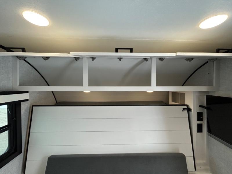 Pack up the family and head to your local state park in this cozy travel trailer for eight. The little ones will love the double-size bunks, and the full bath is close by for convenience. There is a Murphy bed up front that you can fold up each morning to relax on the sofa. If you have any other guests, they can sleep on the U-shaped dinette within the slide out. This model includes a three burner cooktop and a microwave oven, plus an outside kitchen to give the chef a choice where to cook. The 15' power awning will provide shade while the meal is being made, and there is exterior storage for your camp chairs.