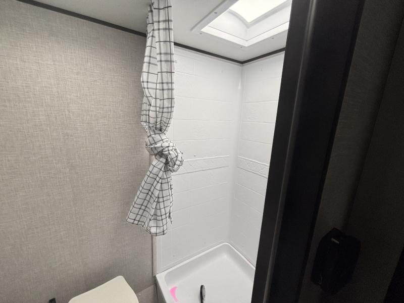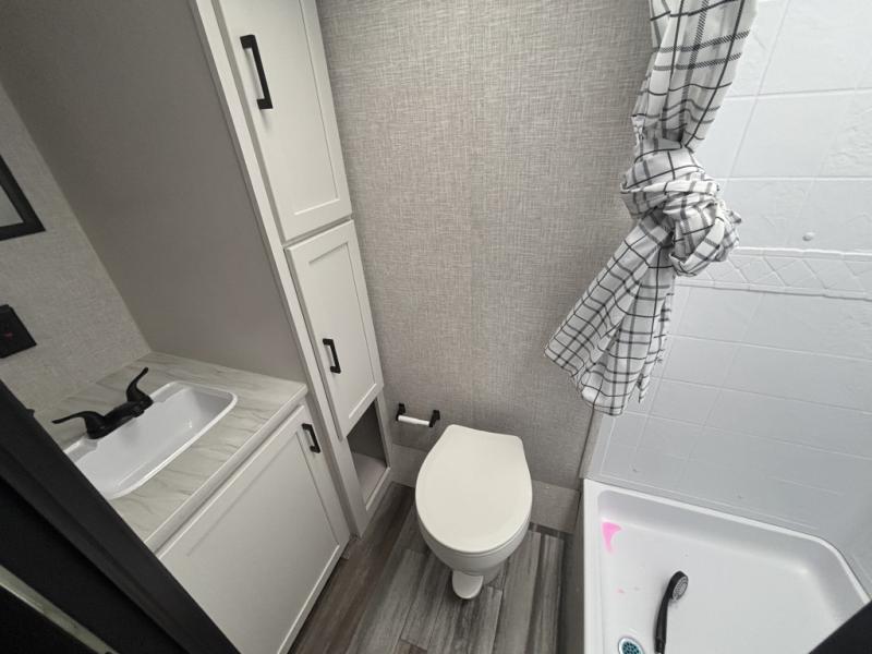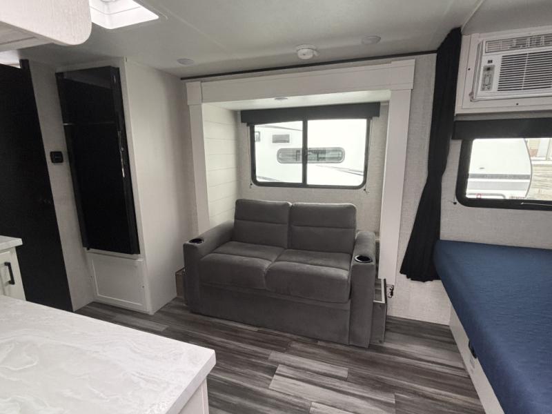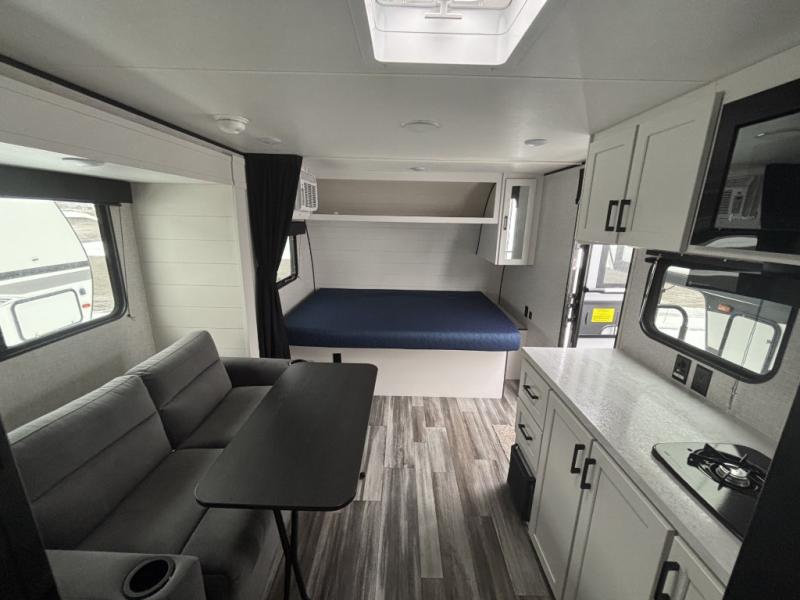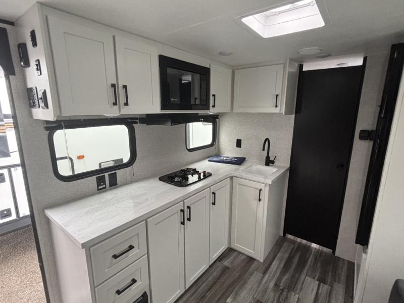 This single-axle couple's travel trailer is sure to bring you happiness at the campground. There is a front queen bed with a privacy curtain if you have a guest staying over on the jack-knife sofa, and the movable table in front of the sofa will provide more floor space when needed. A cooktop and microwave oven will let you make meals each day, and an 8 cu. ft. 12V refrigerator will be perfect for perishables. This model also includes a full rear bath with a tub/shower, a toilet, plus a sink and a linen closet for clean towels. The optional STX Edition can be added on this model which includes 16 in. off-road tires, triple entry steps, a power tongue jack, and more!