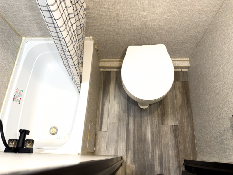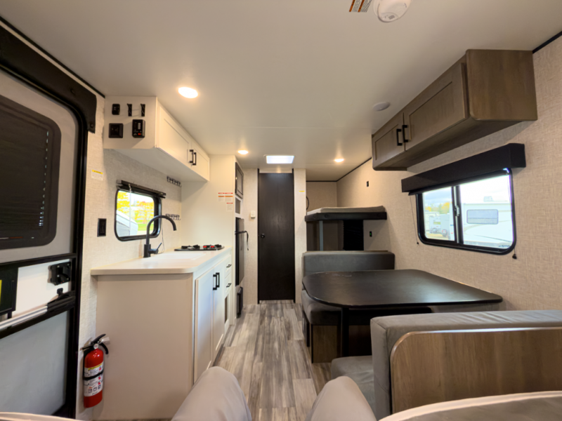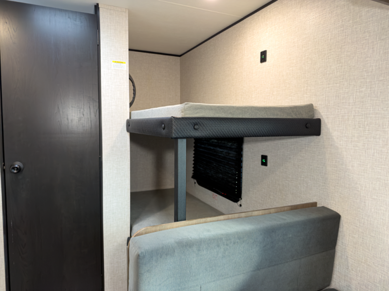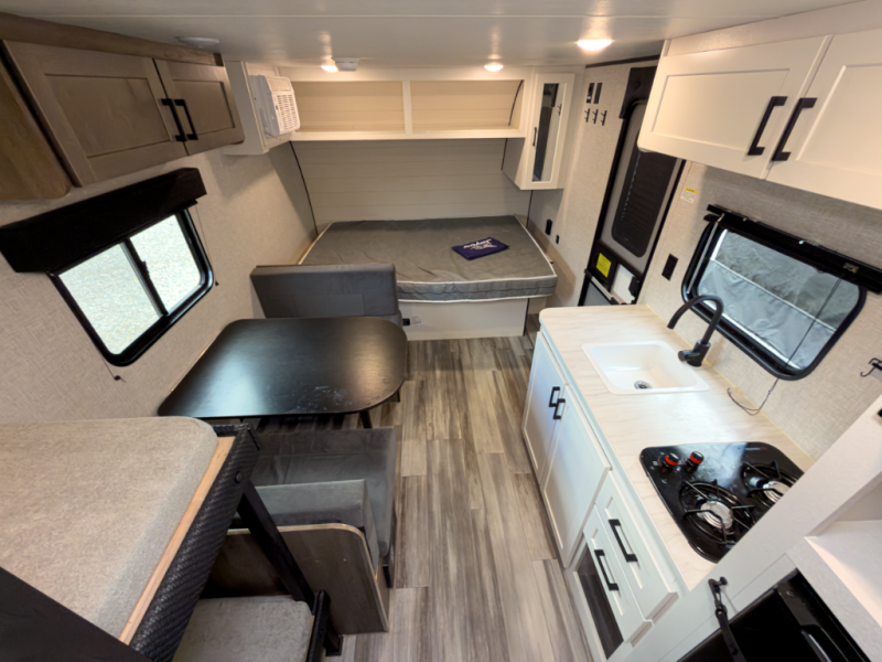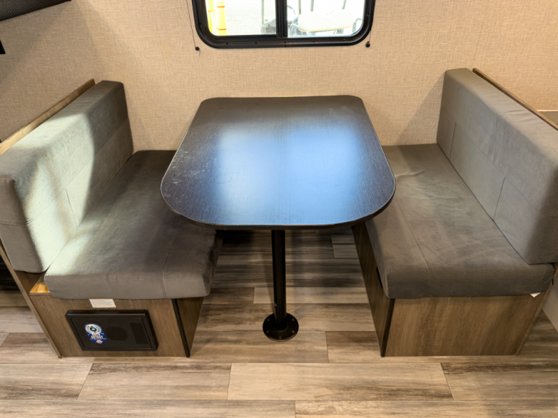 Your crew of five will love camping in this single-axle travel trailer! There are bunk beds in the rear corner and a full bath in the other rear corner for easy nighttime use. You will have the front queen bed to yourselves, along with an overhead shelf and a nightstand/wardrobe for your clothes. The booth dinette provides a place to dine, play games, and even let an extra guest stay over. The Customer Value Package on this Sport Edition model includes a 19K BTU furnace, stabilizer jacks, a power awning, an entry door with a window and shade prep, and many more stand-out features!