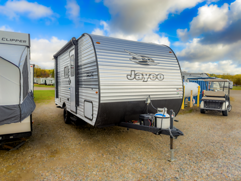 Jay Flight SLX 170BH with lightweight towability, double bunks, full kitchen, and dependable Jayco build quality priced for fast-moving family camping in Michigan.