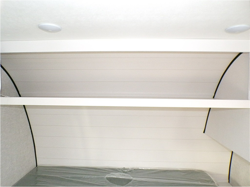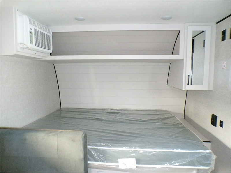 - Front Queen Bed: Rest easy on the front queen bed, complete with overhead shelving and a nightstand/wardrobe for convenient storage.