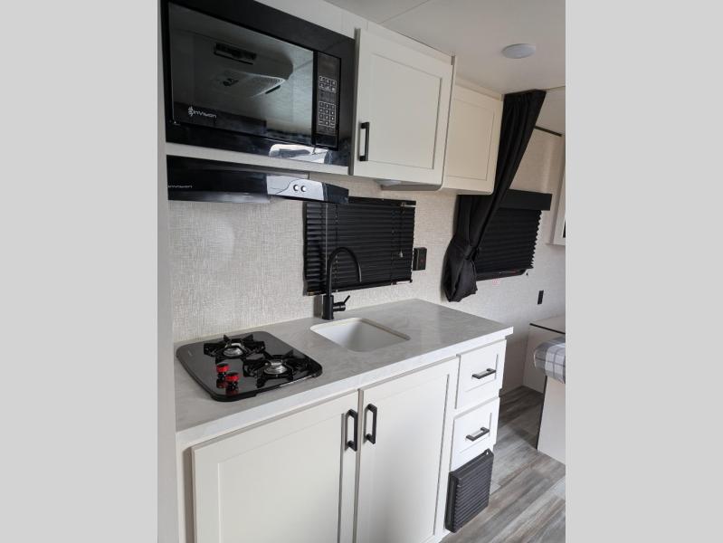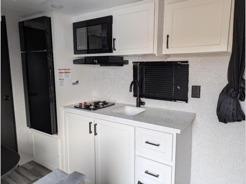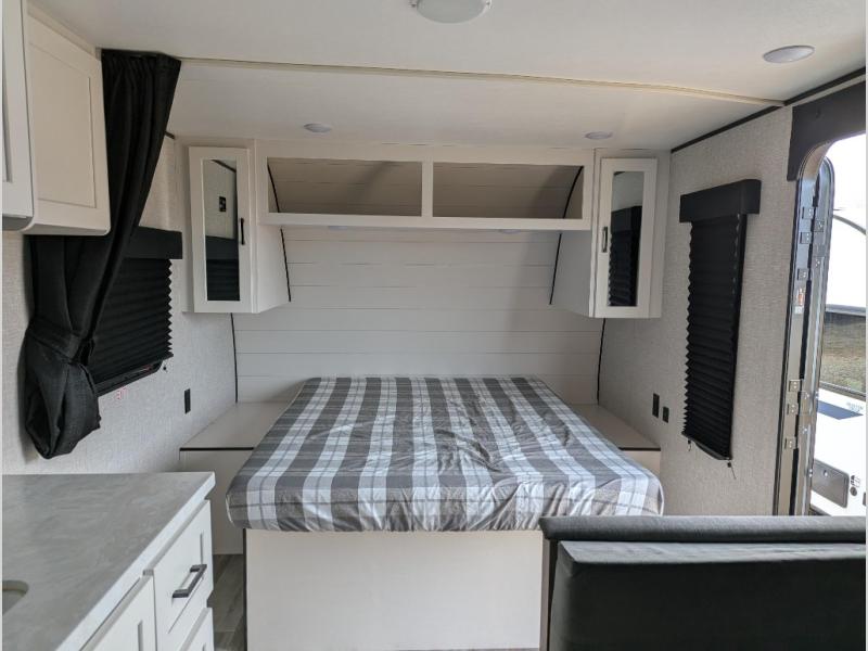 This travel trailer includes everything you need for fun trips at the lake. When you arrive at the campground, you can unload the exterior storage, then put out the 12' power awning with LED lights. There is also an LP Quick Connect if you want to hook up your own grill! The booth dinette inside will provide a place to dine together, and the full rear bath with a tub/shower will make bath time easier than ever for little ones. A front RV queen bed will provide a great night's rest, and the privacy curtain will be appreciated when you're getting dressed in the morning. The optional STX Edition can be added on this model which includes 16 in. off-road tires, triple entry steps, a power tongue jack, and more!
