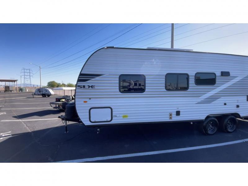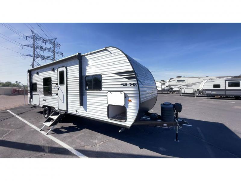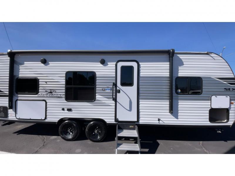 The Jayco Jay Flight SLX travel trailer is quite easy to own because it is lightweight for an easier towing experience. Built on a fully integrated A-frame with galvanized-steel, impact-resistant wheel wells, the Jay Flight SLX has quality at its very foundation. That quality continues on to the electric self-adjusting brakes, easy-lube hubs, Magnum Truss roof system, and LP quick connect. Some of what the mandatory Customer Value Package includes is backup camera prep, Keyed-Alike entry and baggage doors, marine grade exterior speakers, and an on-demand tankless water heater.