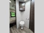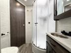 Searching for an RV to travel with family and friends? This coach offers up to seven sleeping spaces when you utilize the queen bed, the bunk beds, the cab over bunk and the furniture. The private master bedroom is in the rear and has access to the double entry bathroom, and the bunk beds are just across from the main entrance which is convenient. The kitchen provides a Furrion all-in-one cooktop and oven, a residential-size microwave and an 10 cu. ft. refrigerator, plus a pantry. You can dine at the Jayco exclusive, easy-operation legless dinette table or while sitting on the sofa. You might like to add the theater seating option in place of the sofa if you prefer that setup. And the cab seats swivel for more seating.