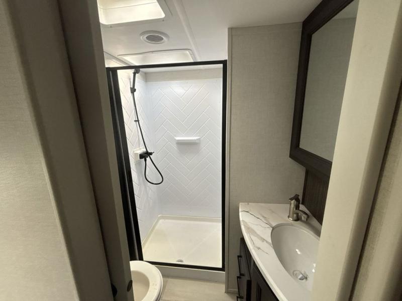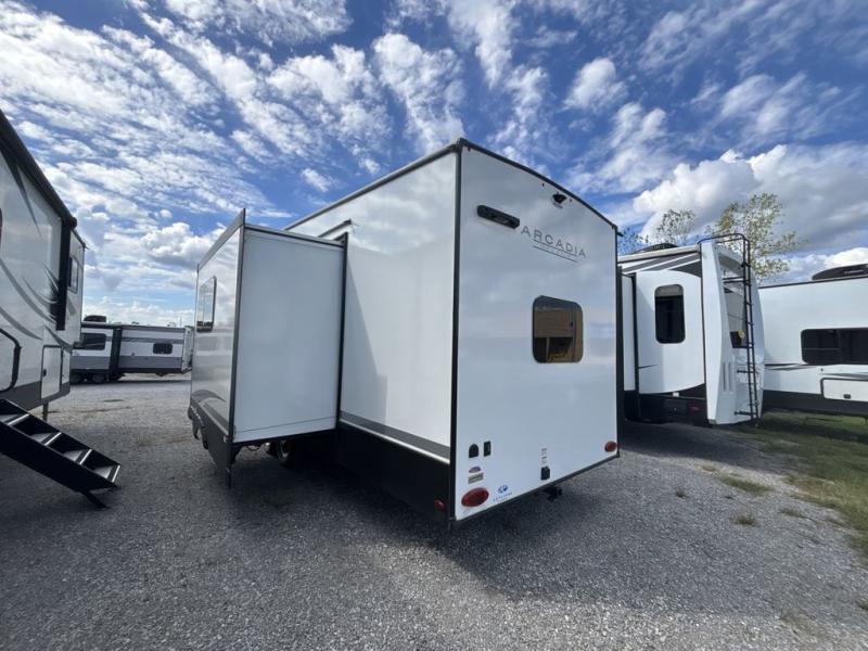 With any Arcadia Select fifth wheel by Keystone you will enjoy easy towability and at-home comforts at an affordable price! The laminated sidewalls with five sided aluminum superstructure will provide a strong foundation so you can enjoy your RV for years to come, plus a one-piece, heated and enclosed polypropylene underbelly means you can camp year around! And an upgraded Roto-Flex hitch pin will make it easy to tow. Head inside to find tall slides for added space, seamless, pressed countertops, convenient underbed storage, and a large shower with a retractable door and skylight. These fifth wheels also include a Blade Pure A/C system, Girard on-demand tankless water heater, two 30 lb. LP tanks, and more utilities to make your camping experience run smoothly.