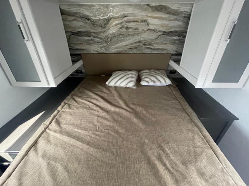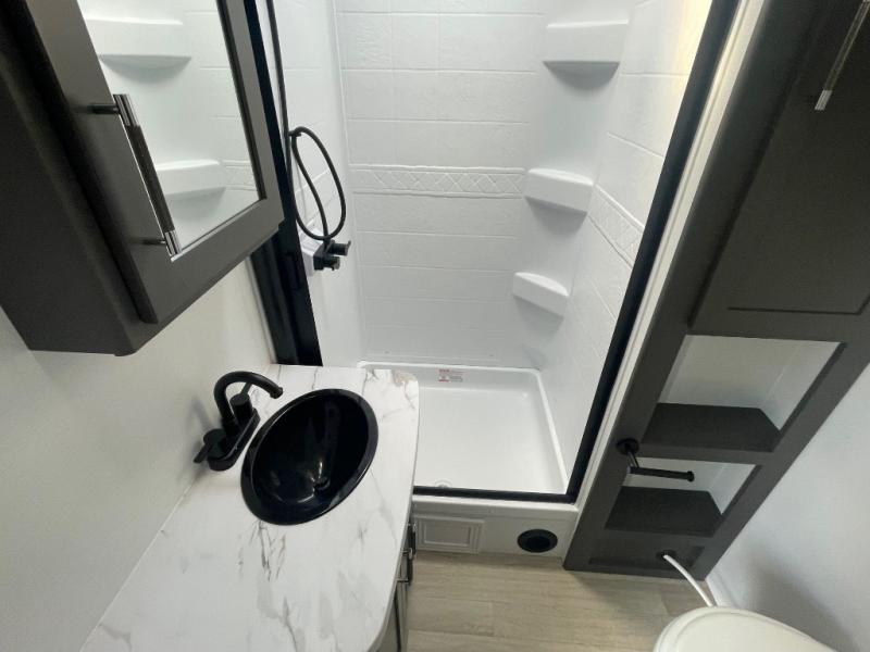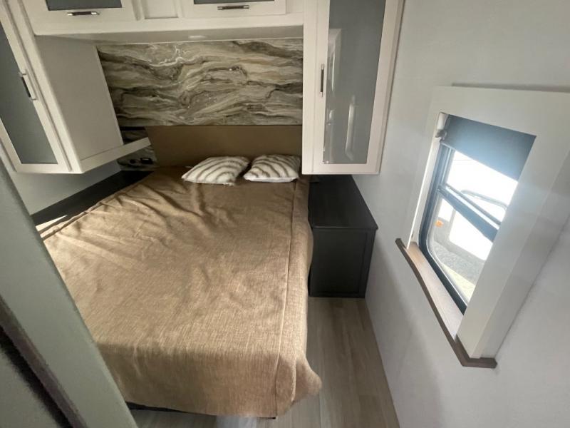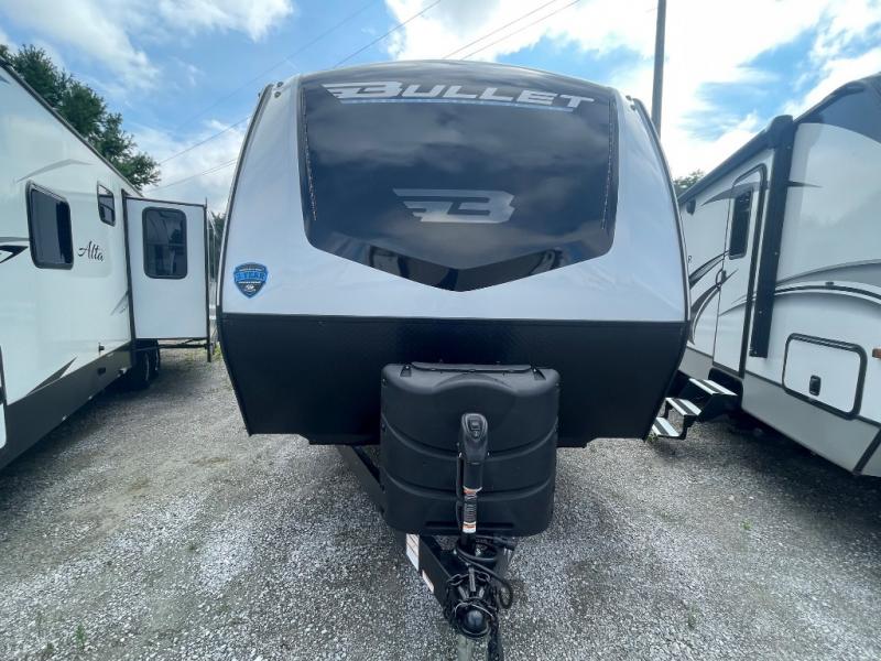 The Bullet Crossfire by Keystone are the perfect lightweight travel travel for rookie campers to seasoned RVers! Each one is built with a one-piece polypropylene underbelly, a fully walkable roof, and a high impact thermoset resin painted front cap for added durability. There is also a Dexter Torsion axle rubber ride suspension and Goodyear Endurance tires for a smooth tow plus a power tongue jack and power stabilizer jacks for easy set up. The interior will have you feeling right at home with deluxe night shades, updated Tranquil Timber decor, residential Beauflor vinyl flooring, and seamless kitchen countertops.