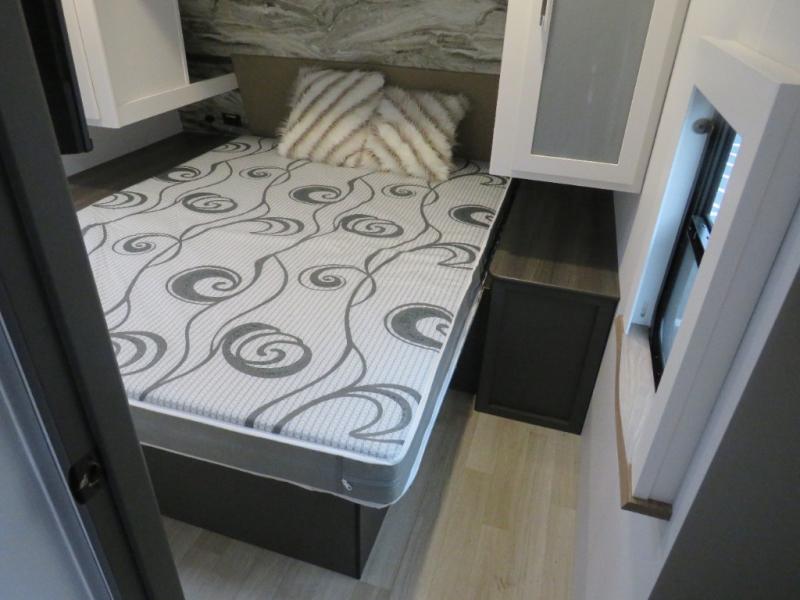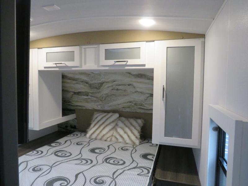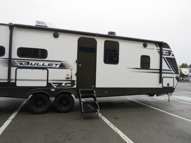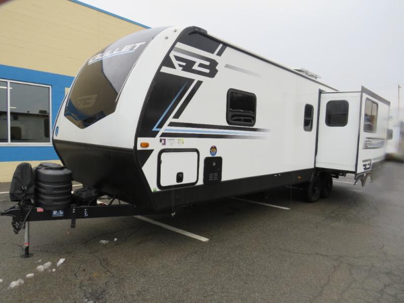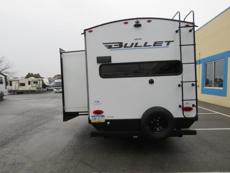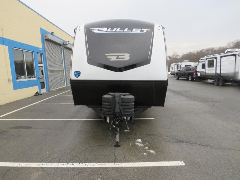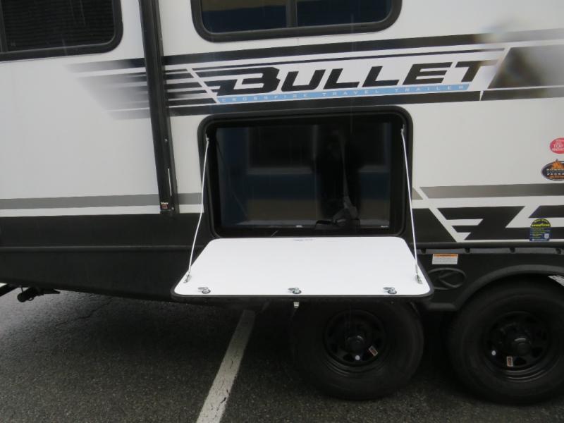 The Bullet Crossfire by Keystone are the perfect lightweight travel travel for rookie campers to seasoned RVers! Each one is built with a one-piece polypropylene underbelly, a fully walkable roof, and a high impact thermoset resin painted front cap for added durability. There is also a Dexter Torsion axle rubber ride suspension and Goodyear Endurance tires for a smooth tow plus a power tongue jack and power stabilizer jacks for easy set up. The interior will have you feeling right at home with deluxe night shades, updated Tranquil Timber decor, residential Beauflor vinyl flooring, and seamless kitchen countertops.