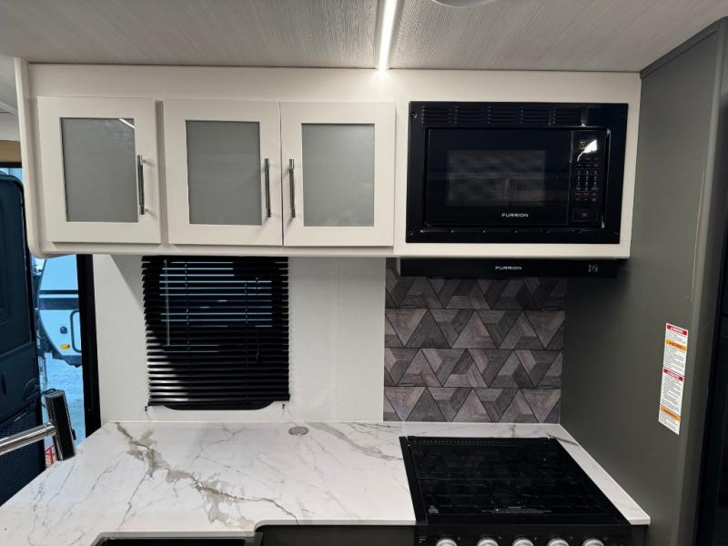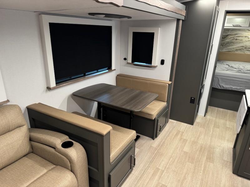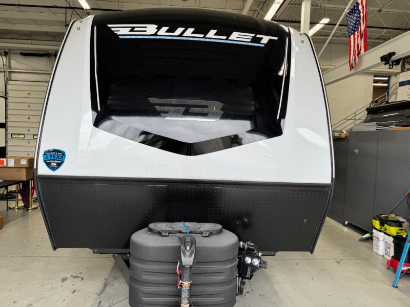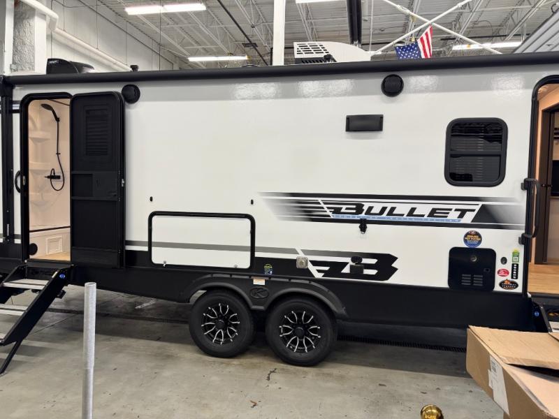 The Bullet Crossfire by Keystone are the perfect lightweight travel travel for rookie campers to seasoned RVers! Each one is built with a one-piece polypropylene underbelly, a fully walkable roof, and a high impact thermoset resin painted front cap for added durability. There is also a Dexter Torsion axle rubber ride suspension and Goodyear Endurance tires for a smooth tow plus a power tongue jack and power stabilizer jacks for easy set up. The interior will have you feeling right at home with deluxe night shades, updated Tranquil Timber decor, residential Beauflor vinyl flooring, and seamless kitchen countertops.