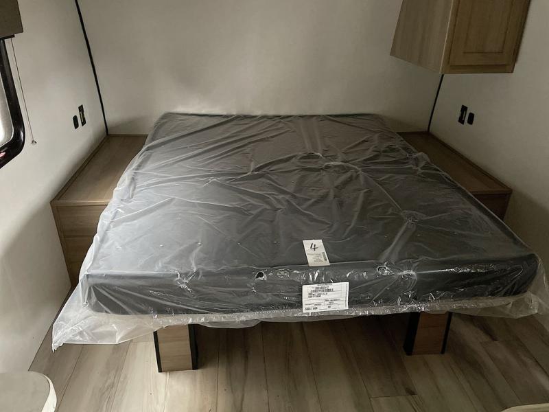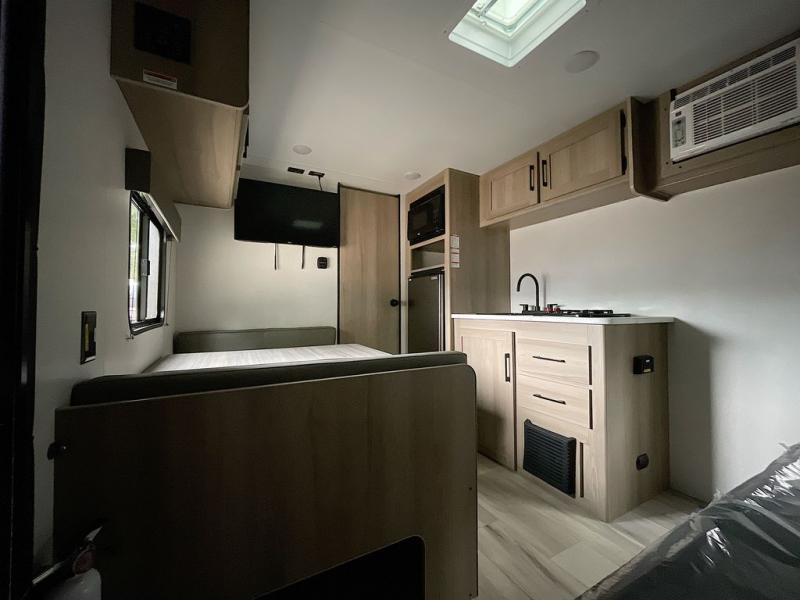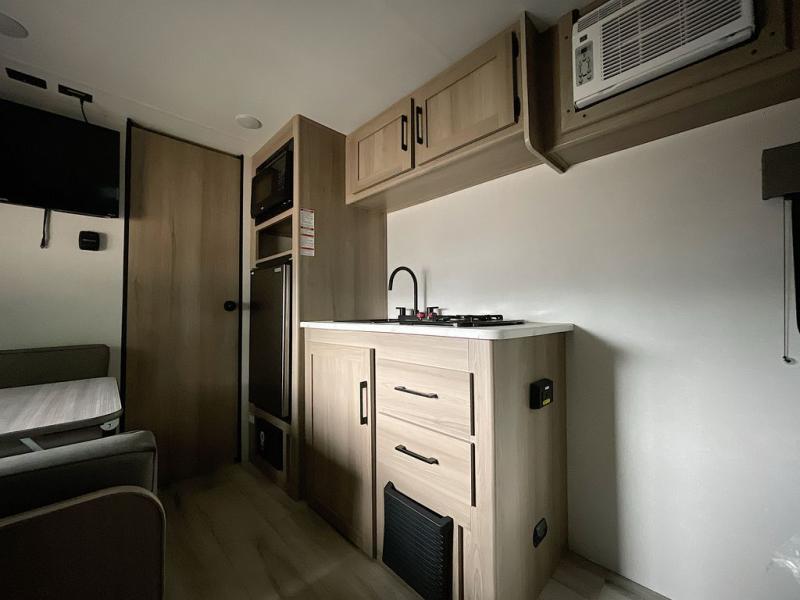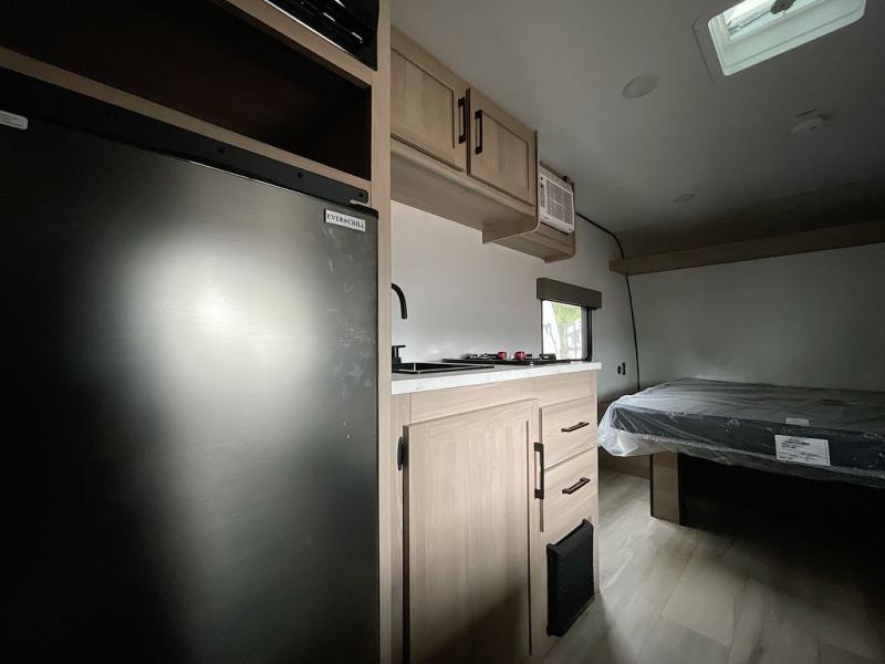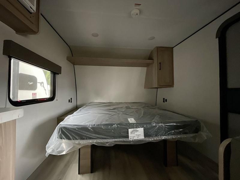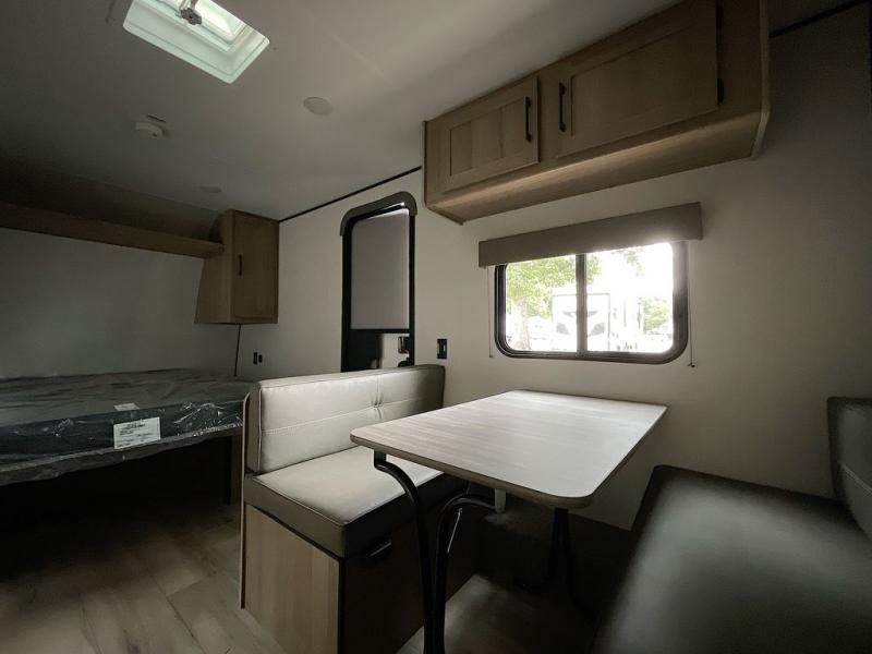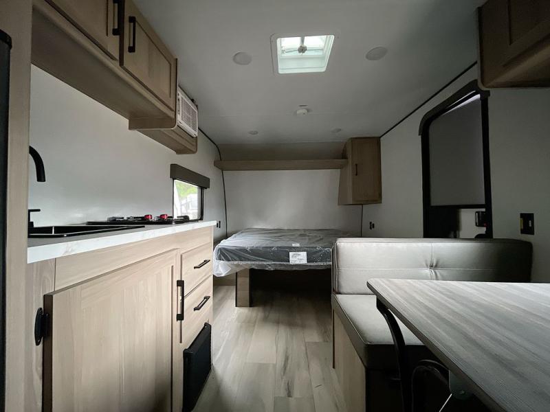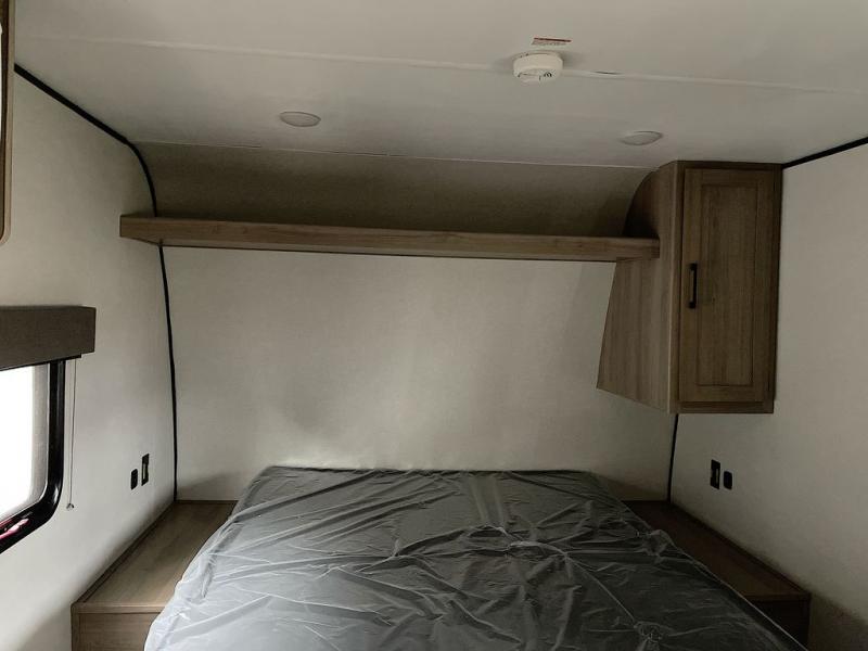 With any Coleman travel trailer, you will experience Keystone's quality throughout, plus enjoy lightweight towing to the campground or RV park. There is a walkable roof, tinted safety glass windows, and a power awning outdoors for an inviting space to relax. The friction hinge entry door is another convenience you'll appreciate, and there is Furrion backup camera prep if you want the option to make parking easier. Inside, you'll find blackout night shades, a 6' 8" ceiling height, bedside outlets, and many more comforts.