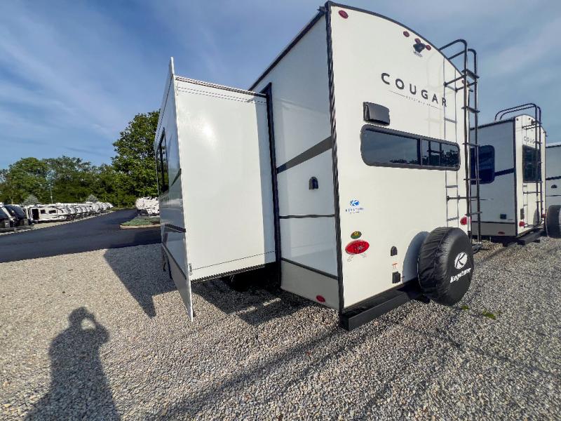 The Keystone Cougar Half-Ton fifth wheel and travel trailers are known as one of America's favorites for a reason! Some of those reasons are the exclusive features that come from Keystone, like the Winegard Air 360+ omni-directional rooftop antenna, the in-floor heating ducts, and the Hyper Deck flooring. The Cougar Half-Ton has a Climate Guard protection package to keep you safe during inclement weather, along with two roof attic vents, PEX plumbing and more. Use the 21" Furrion range with Piezo ignition to create all of those familiar meals from home, and take charge of how you camp with the SolarFlex Protect that comes standard, or upgrade to a larger package or lithium batteries for even more off-grid capabilities.