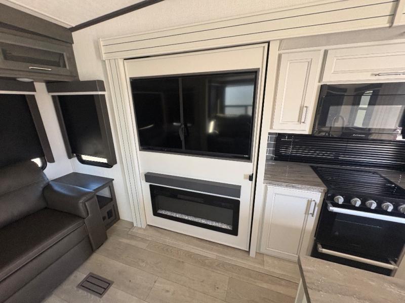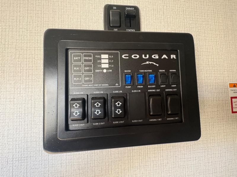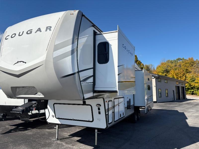 Spend more time having fun and less time worrying about your RV with the Keystone Cougar fifth wheel! These units have all that you will need for excellent vacations. The interior comes with 5/8" one-piece DynaSpan® flooring, tall slide outs for added comfort and head room, night roller shades throughout, and residential, raised-panel hardwood cabinet doors and drawers. You will also enjoy decorative crown molding, a 5,500 BTU electric fireplace with thermostat control and remote, and a Max Air exhaust fan with rain sensor. The exterior is also fully outfitted with a convenience center, friction-hinge entry door, electric four-point auto leveling system, and Lippert SolidStep® on the main entry. Each model is available with the optional Hero Edition. By choosing this edition, you can help support our nation's heros and their families by contributing to the Wounded Warrior Project. This optional package features an industry exclusive full-body paint matte finish, frameless windows, a glass entry door, blackout rims, and green LED exterior accent lighting; see dealer for more details!