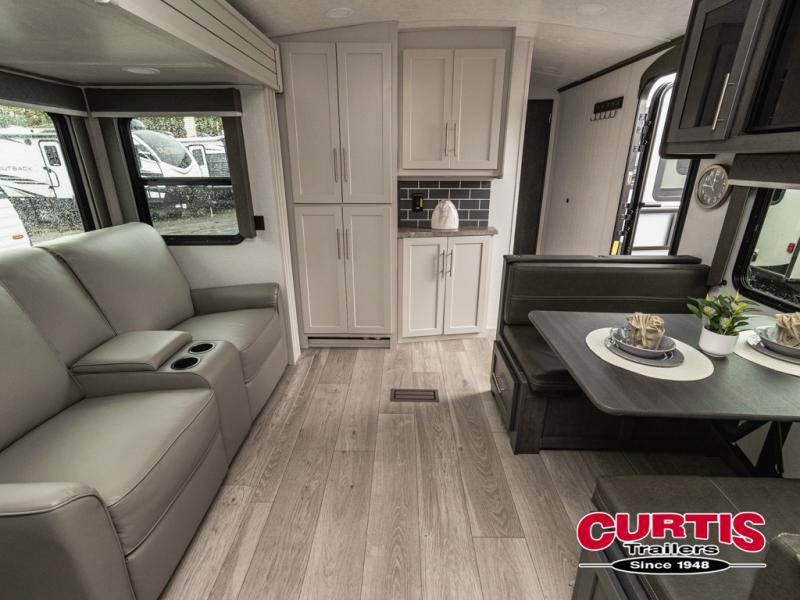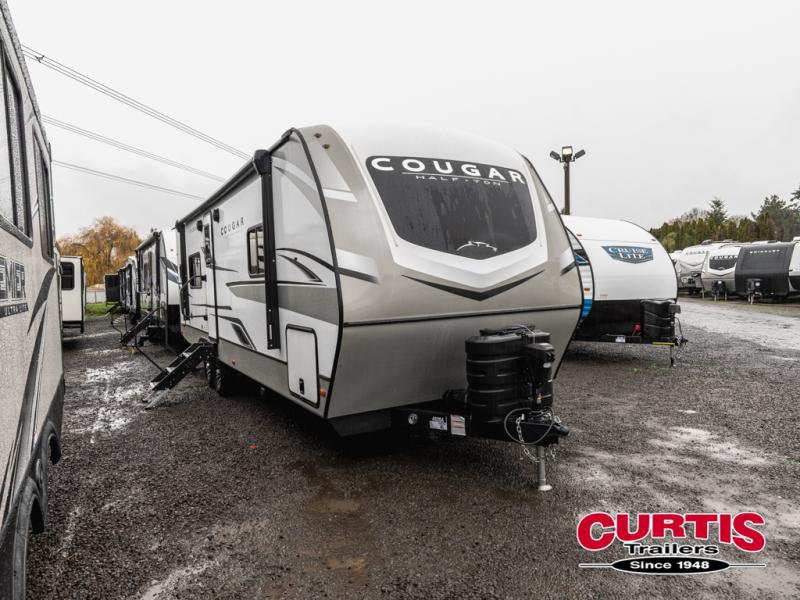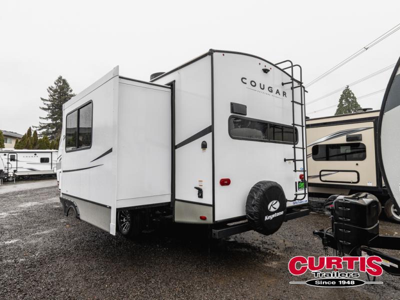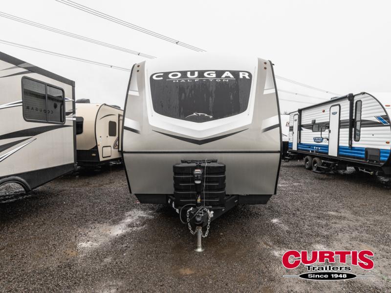 The Keystone Cougar Half-Ton fifth wheel and travel trailers are known as one of America's favorites for a reason! Some of those reasons are the exclusive features that come from Keystone, like the Winegard Air 360+ omni-directional rooftop antenna, the in-floor heating ducts, and the Hyper Deck flooring. The Cougar Half-Ton has a Climate Guard protection package to keep you safe during inclement weather, along with two roof attic vents, PEX plumbing and more. Use the 17" Furrion range with Piezo ignition to create all of those familiar meals from home, and enjoy endless hot showers with the Girard tankless on-demand water heater!