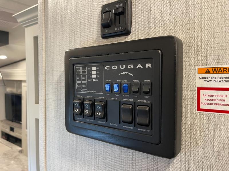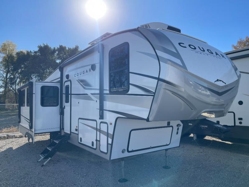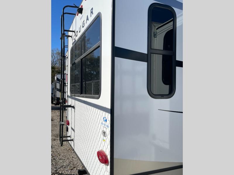 The Keystone Cougar Half-Ton fifth wheel and travel trailers are known as one of America's favorites for a reason! Some of those reasons are the exclusive features that come from Keystone, like the Winegard Air 360+ omni-directional rooftop antenna, the in-floor heating ducts, and the Hyper Deck flooring. The Cougar Half-Ton has a Climate Guard protection package to keep you safe during inclement weather, along with two roof attic vents, PEX plumbing and more. Use the 21" Furrion range with Piezo ignition to create all of those familiar meals from home, and enjoy endless hot showers with the Girard tankless on-demand water heater!