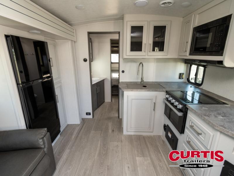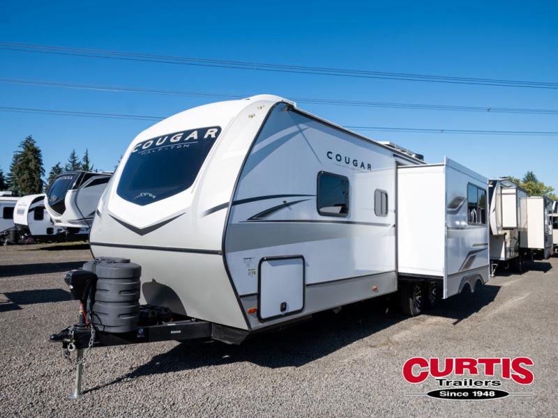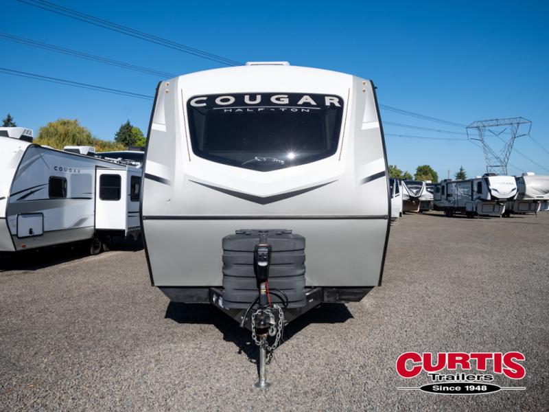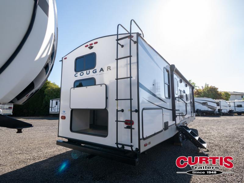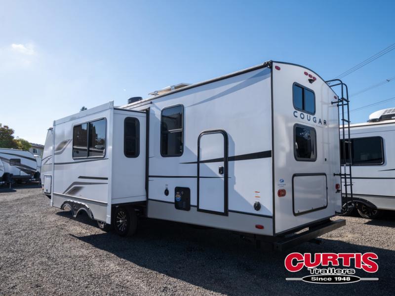 The Keystone Cougar Half-Ton fifth wheel and travel trailers are known as one of America's favorites for a reason! Some of those reasons are the exclusive features that come from Keystone, like the Winegard Air 360+ omni-directional rooftop antenna, the in-floor heating ducts, and the Hyper Deck flooring. The Cougar Half-Ton has a Climate Guard protection package to keep you safe during inclement weather, along with two roof attic vents, PEX plumbing and more. Use the 17" Furrion range with Piezo ignition to create all of those familiar meals from home, and enjoy endless hot showers with the Girard tankless on-demand water heater!