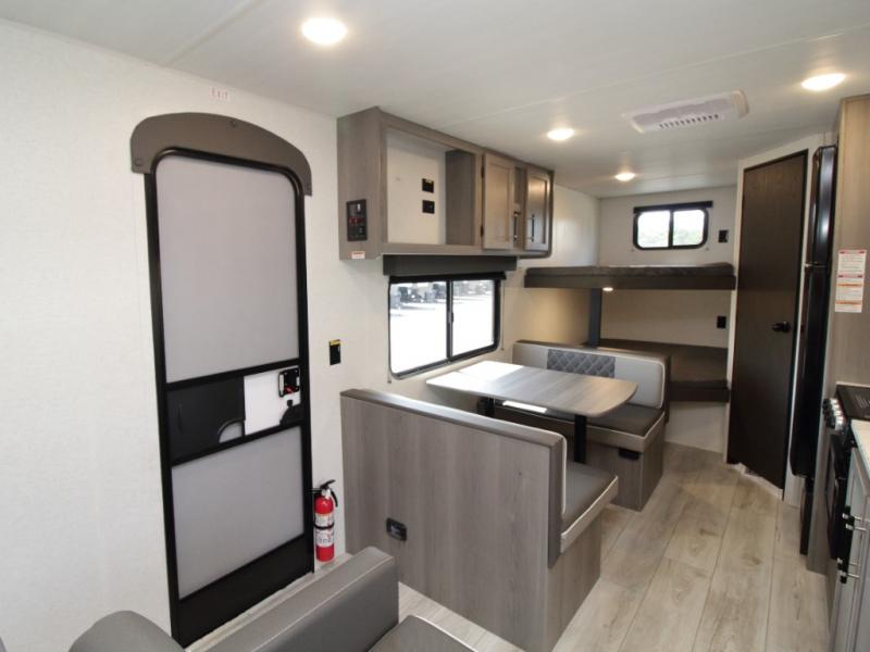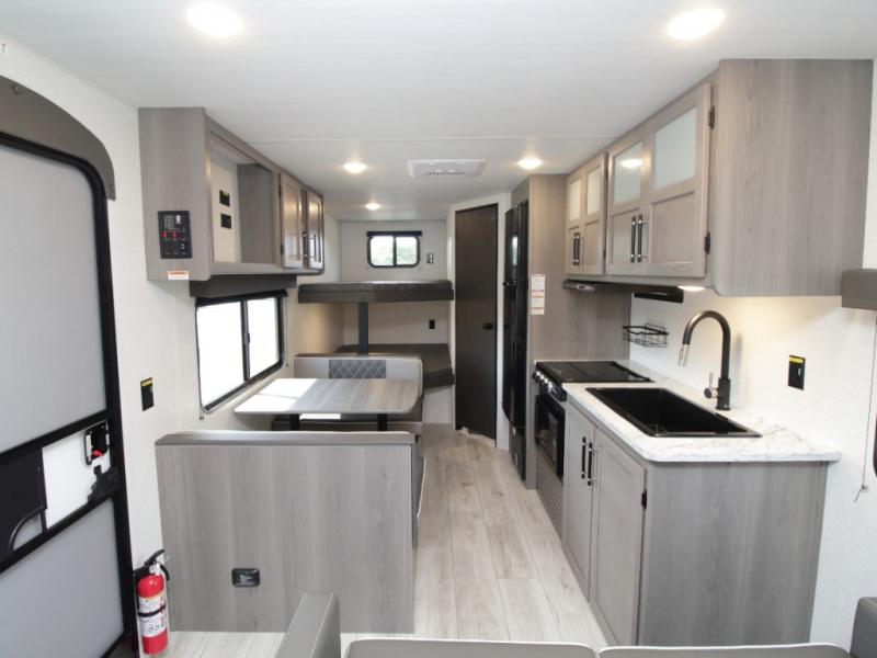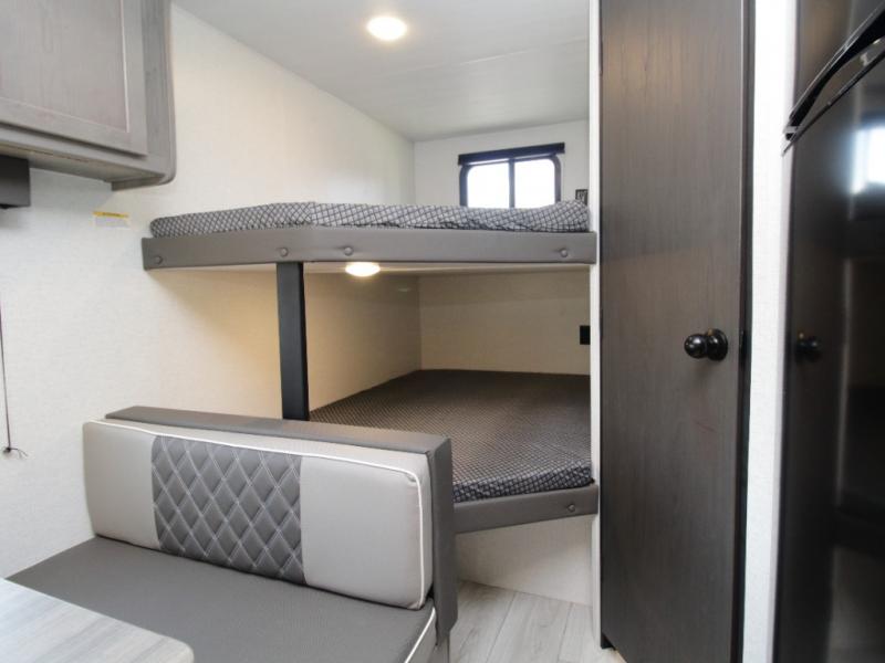 The 2025 Hideout 240BH is the perfect camper for your family, complete with double-size bunk beds in the rear and a semi-private bedroom in the front!