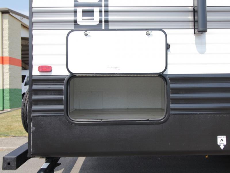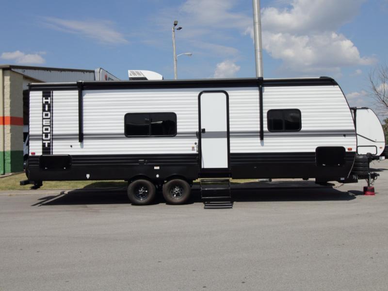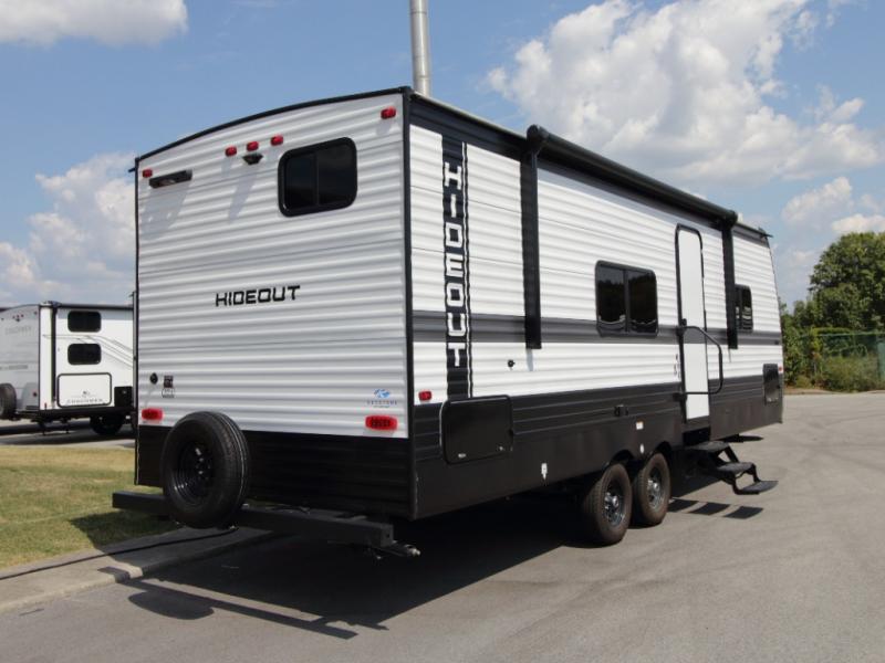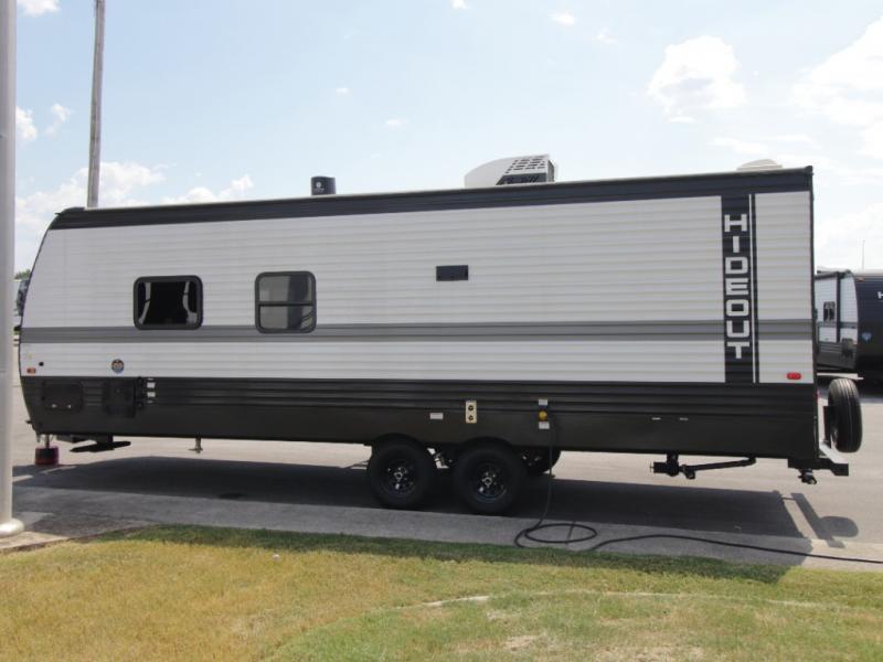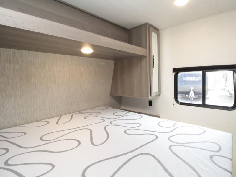 Built by Keystone RV, the Hideout Sport Double Axle lineup delivers durability and value. You’ll appreciate features like a rugged aluminum exterior, walkable roof, power tongue jack, heavy duty stabilizer jacks, and tinted safety glass windows. Inside, you’ll feel right at home with modern décor, blackout night shades, and a queen bed with underbed storage.