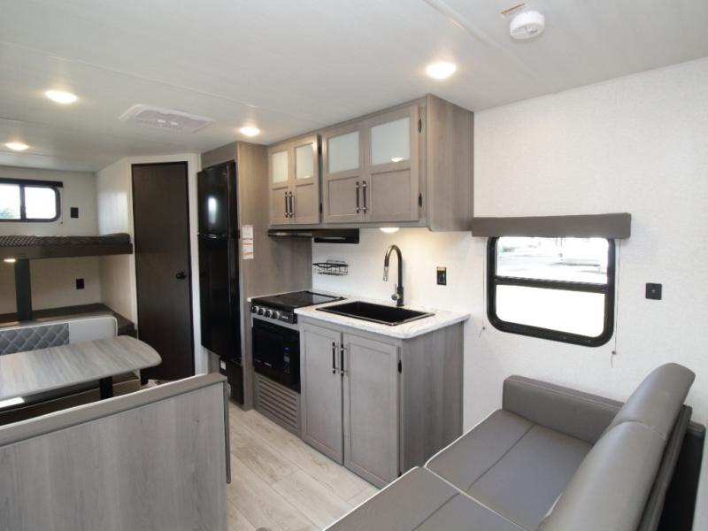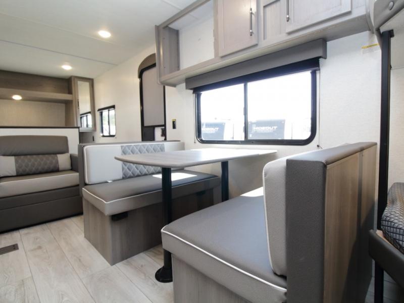 If you need extra sleeping capacity without sacrificing comfort, the Hideout Sport 240BH is the perfect fit. This travel trailer can accommodate the whole crew with double-size bunks, a queen bed in the private front bedroom, plus a sofa and booth dinette that convert into additional beds.