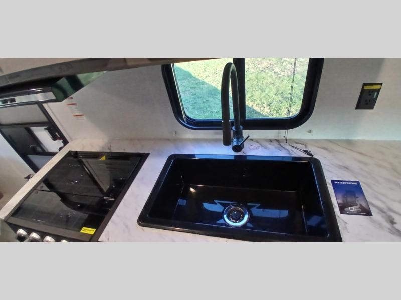 With any Hideout Sport Double Axle travel trailer by Keystone you will enjoy simplified camping solutions that won't break the bank! Each model is constructed with a durable aluminum exterior, tinted safety glass windows, a walkable roof, and an I-beam frame. There are power tongue jacks and heavy duty stabilizer jacks that will make it easier than ever to hitch up and go. An XL entry assist handle will also provide convenience, along with a power awning that will provide much wanted shade during the day. You will feel right at home inside with stylish decor, blackout night shades, and cozy queen bed with storage underneath!