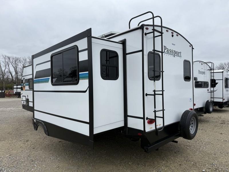 With any Keystone Passport Super Lite travel trailer you will enjoy lightweight towing and lots of interior comforts! The power tongue jack lets you hitch up at the drop of a hat, and the Dexter torsion axle rubber ride suspension will make towing easier than ever. You will appreciate having power stabilizer jacks for quick setup and an exterior convenience center to monitor tank levels. These trailers are constructed with a seamless, laminated and gel-coated filon exterior, 80% tinted safety glass windows, and a one-piece polypropylene underbelly. The interior will have you feeling right at home with residential durable Beauflor vinyl flooring, deluxe night shades, LED lighting throughout, and seamless kitchen countertops to name a few comforts.