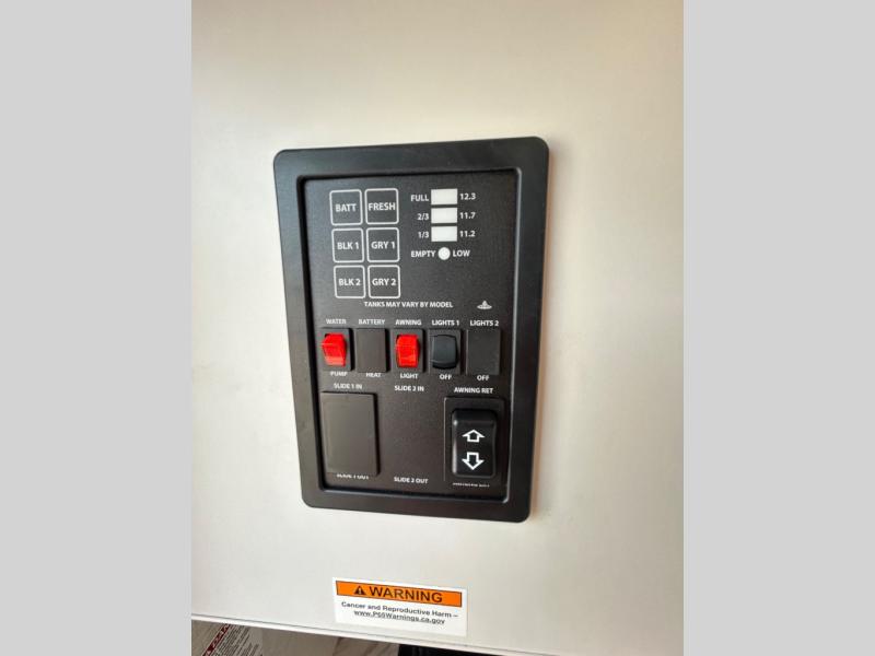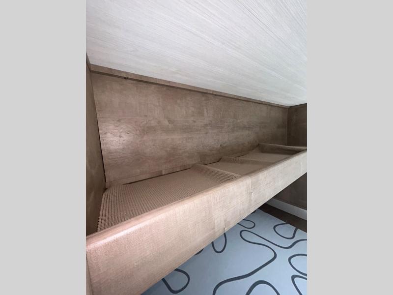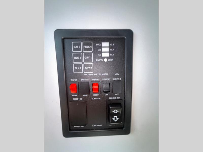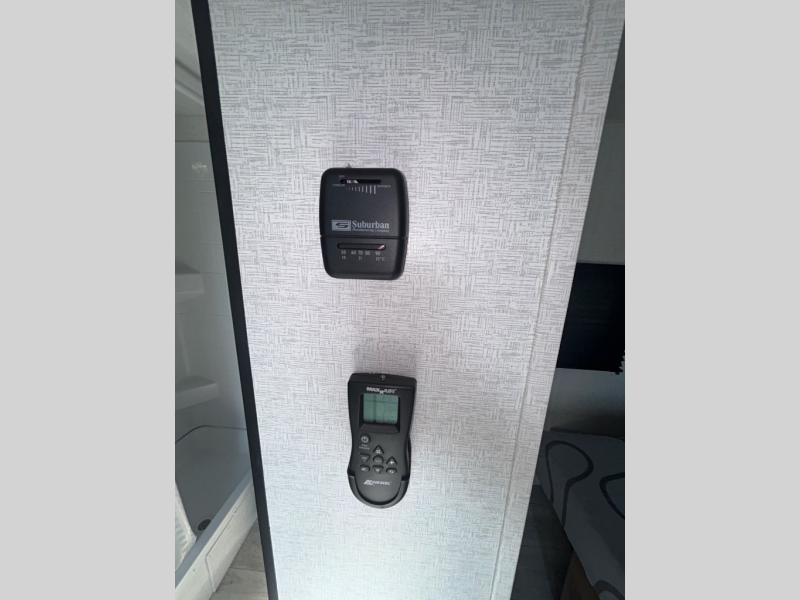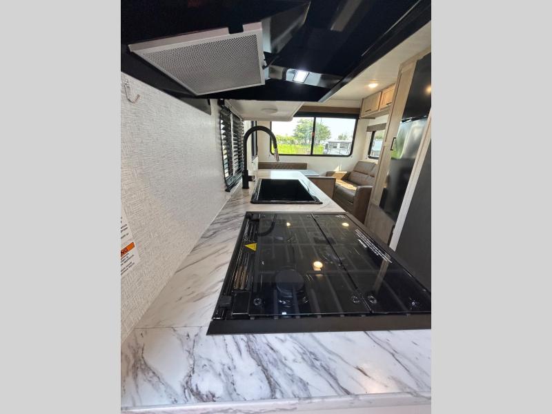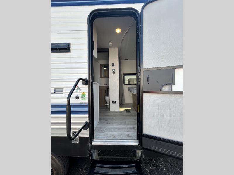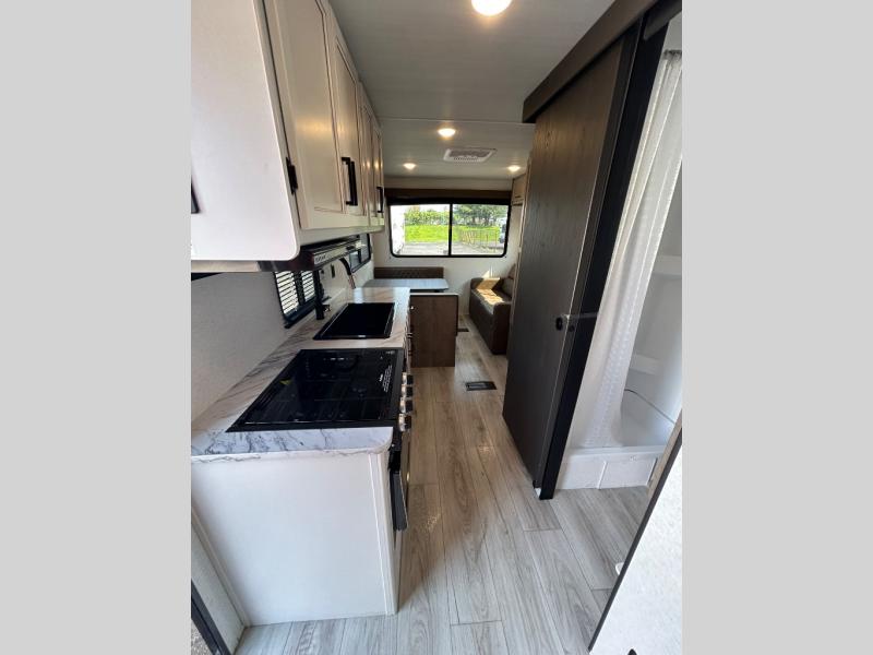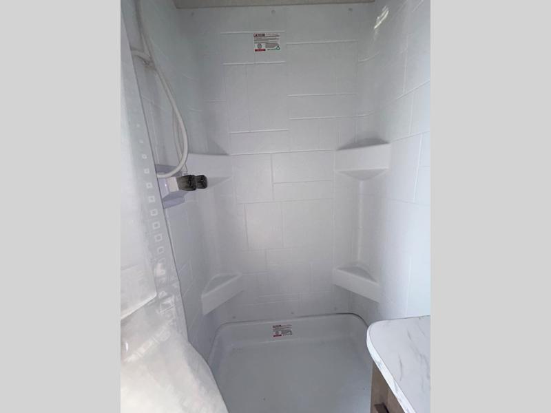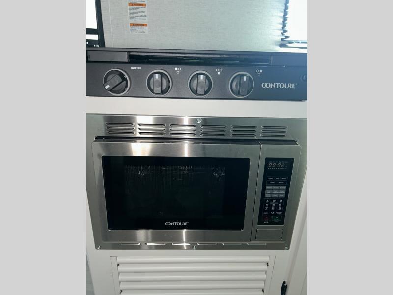 This trailer is perfect for your crew of four to six. There is a queen bed in the semi-private bedroom, along with dual closets and nightstands to keep your things tidy. You can dine each day on the booth dinette, relax on the sofa, and house additional guests here at night. The kitchen includes everything you need to prepare meals each day, including a gas range, microwave, and a 10 cu. ft. 12V refrigerator for cold items. And the full bath on board lets you stay clean throughout each camping trip!