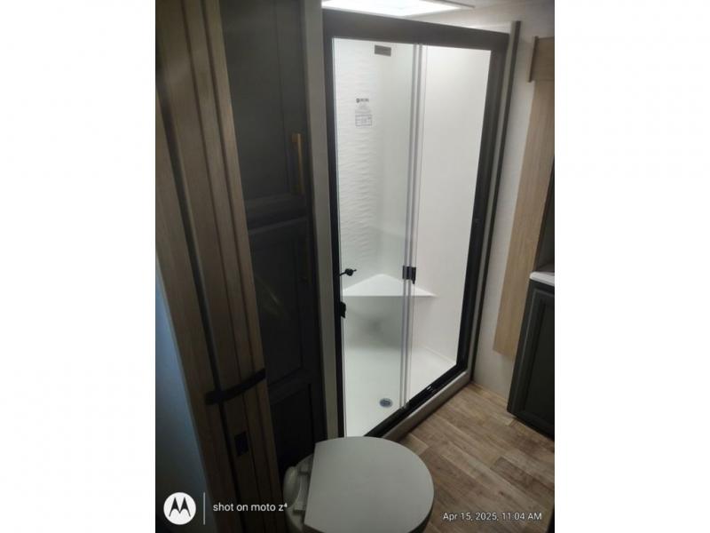When you choose a Ridgeway fifth wheel by KZ you are choosing a modern design, convenient features, and comfort at every turn! These units have been constructed with some of the most durable materials in the industry, including Azdel composite panels and Tufflex roofing material. The exterior includes a full painted front cap, a fully-finished, heated and sealed basement storage compartment, and a deluxe heated water convenience center to easily monitor your units water levels. There is also 4-point auto electric leveling, Keyed-Alike for baggage and entry doors, a 2" towing receiver hitch, and many more stand-out exterior features. Once inside, you'll enjoy the ceiling crown molding, 5" gold cabinet hardware, deluxe residential-style furniture, and all-wood lumber core screwed cabinets with hardwood doors. The comforts continue on in the bathroom and bedroom with a shower skylight and built-in seat, large linen closets, a luxurious bedspread, and XL under-bed storage for luggage, extra blankets and more!