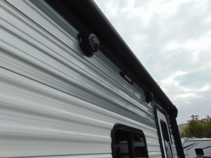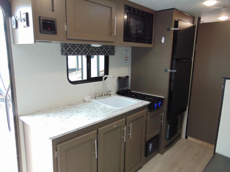 Bunk beds make this travel trailer the perfect family-friendly unit, so head to your local state park! The front 54" x 80" bed will provide comfortable sleeping space for you, plus there is a booth dinette for one or two little ones to sleep on. This model includes a two burner cooktop, a microwave oven, plus a single bowl sink for hassle-free clean up. The 13' power awning will protect you from the elements, and the pass-through storage will be perfect for fishing poles.