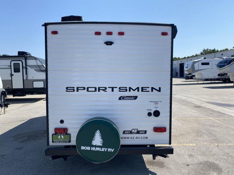 With any Sportsmen Classis travel trailer by KZ you will find durable construction materials, like the 3/8" fully-walkable roof and the one-piece seamless Tufflex material. Each model includes scissor-style stabilizer jacks, a Key-Alike program for baggage and entry doors, and a Leash Latch with a bonus beverage opener. You will find interior and exterior speakers plus backup camera prep and solar prep. The Sportsmen Classic is designed to make you feel at home with LED interior lights, rail-style cabinet doors, residential grade linoleum, and plenty of storage space for all your belongings.
