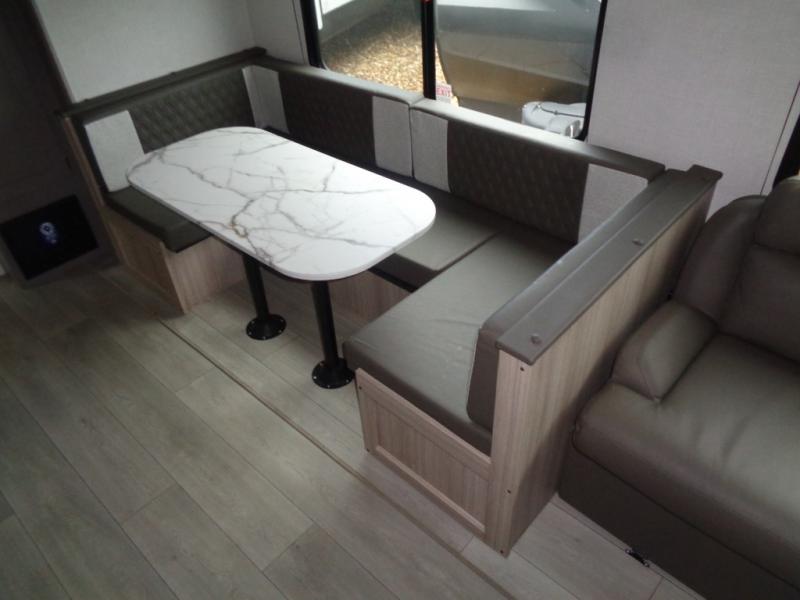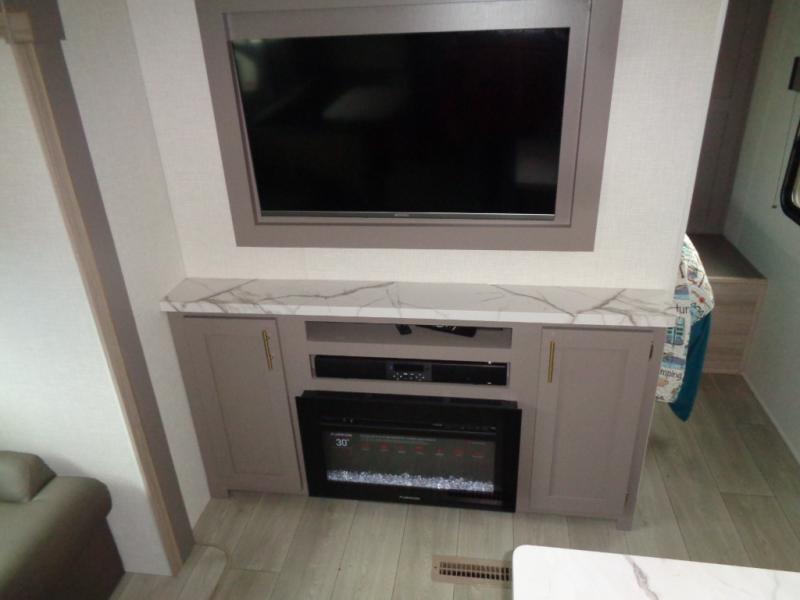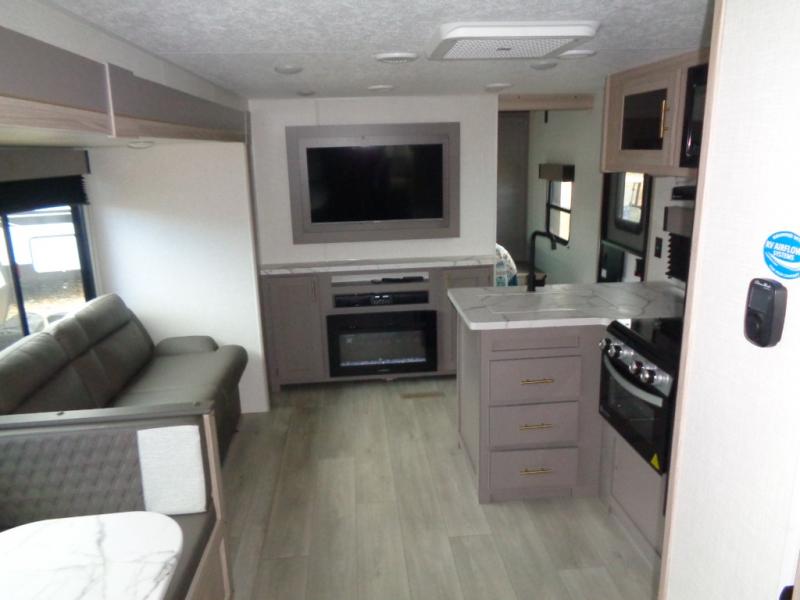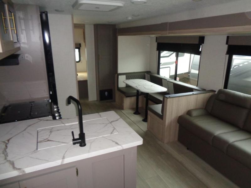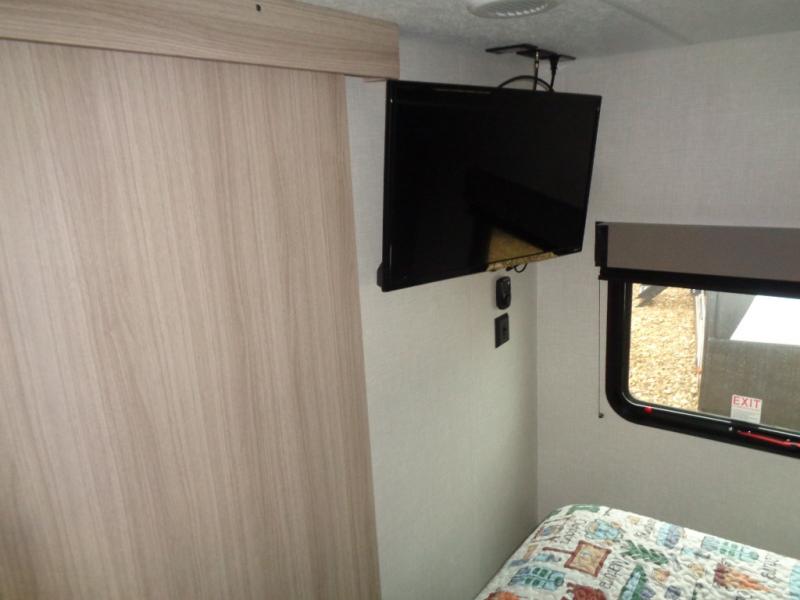 Wow! Take a look at this travel trailer with two private bedroom that include queen beds and space to store your clothes. Each room also has a TV mount if you choose to bring along your own television for late-night movies in bed. The main living area is spacious with the large slide out, and here you can relax on the sofa or around the U-shaped dinette. This model also includes a full bath with a 40" shower that will allow you to clean up each day.