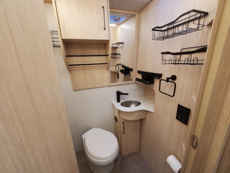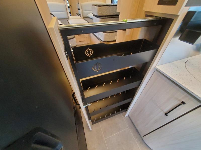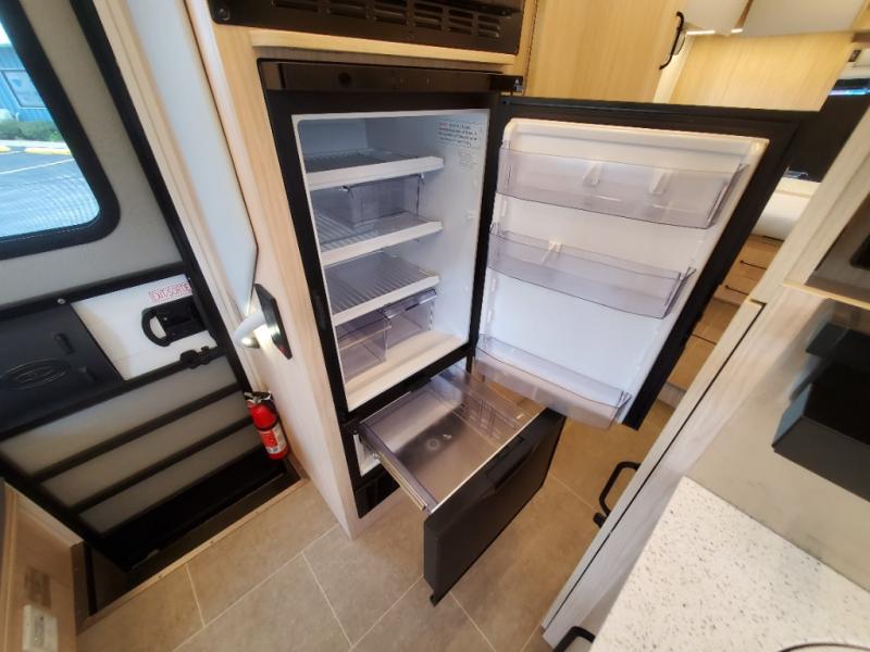 Comfortable and versatile features allow you to travel the way you like in this Unity Class B+ diesel motorhome. You have plenty of choices on how you want to sleep and how you would like to dine. Each night, you can sleep separately from your spouse on one of the two twin-size beds or convert the twins into one king-size bed for more space together. Even the bathroom area is multi-functional because of its separate lavatory from the enclosed shower, and the adjustable front seating area is handy for dining, sleeping, or playing a card game with the family. The flush-mount LP cooktop makes it easy to make your delicious meals, and if you have any leftovers, then you can store them inside the 12V compressor refrigerator with a bottom freezer drawer.