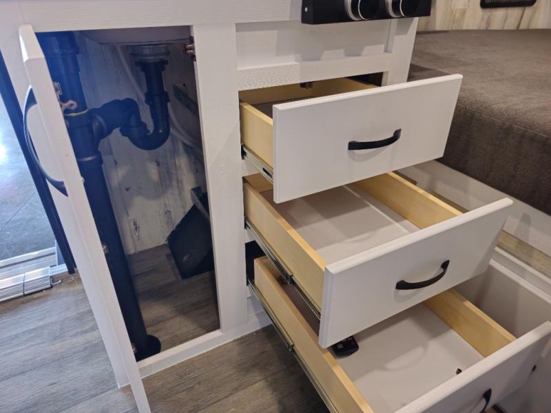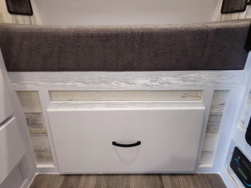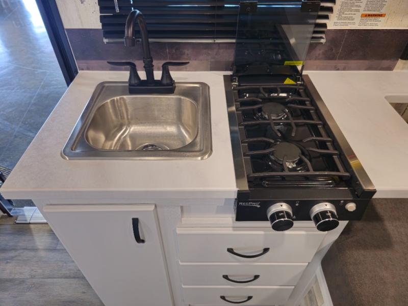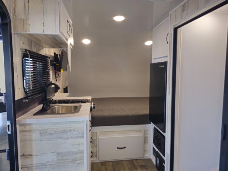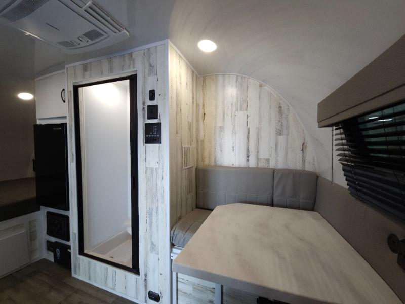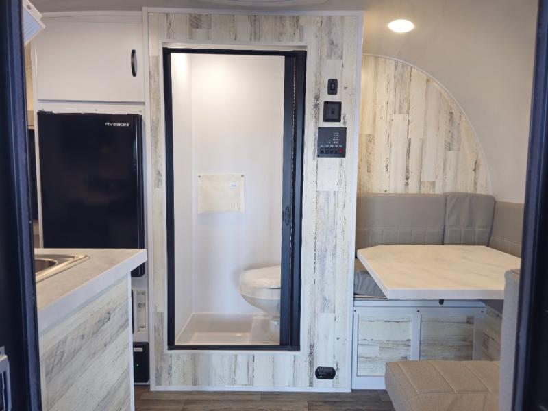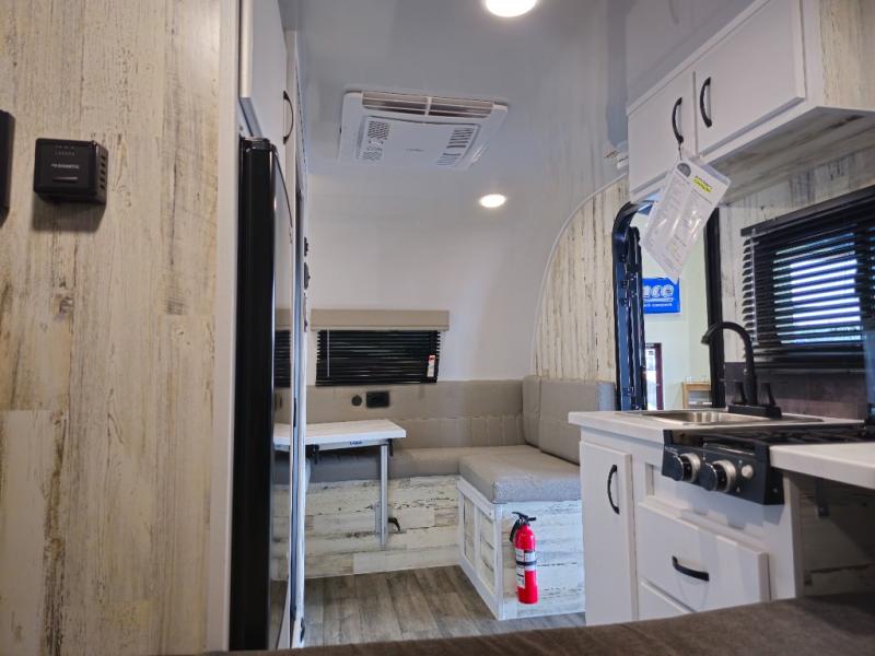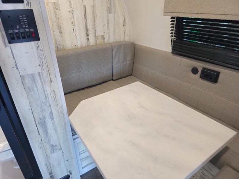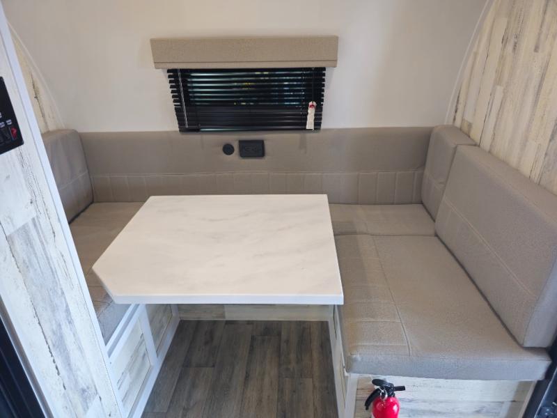 If you're looking for a teardrop trailer with a little more space, check out this Big Buggy BB14! There is a front U-shaped dinette that can convert to cozy sleeping space, a two burner stove, plus a large refrigerator. You can clean up each day in the wet bath that includes a two way bath vent fan plus a Dometic toilet. The exterior baggage door will keep all your gear secure, and the torsion axle will provide smooth towing from home to campground.