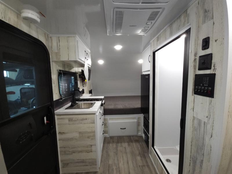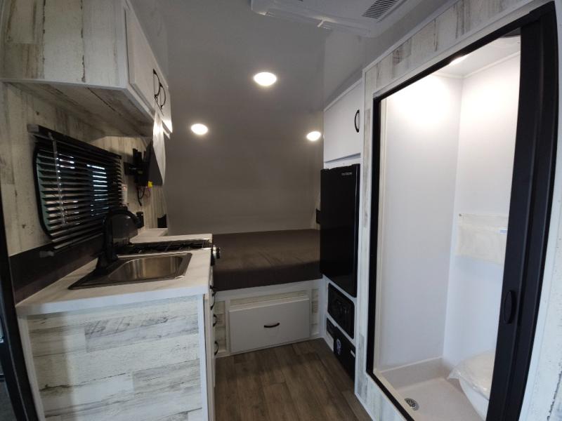 With the Big Buggy teardrop trailer by Modern Buggy RV, you will have all-terrain tires with 14" ground clearance allowing you to venture on bumpy, muddy and off-the-beaten path roads. They are full of modern amenities including an A/C and furnace, a large refrigerator, an on-demand water water. These models are built on a high quality strength, custom aluminum frame, and are put together with AZDEL ceiling and walls. Get out and explore today with the Big Buggy in tow!