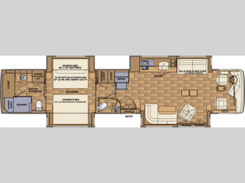 45' - Quad Slide Newell Coach with Mid Entry Door and Rear Master Bath
