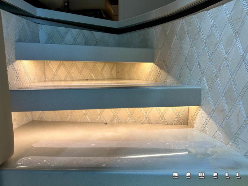 King-size bed with premium quartz tops on nightstandsBuilt-in dresser with premium quartz countertop