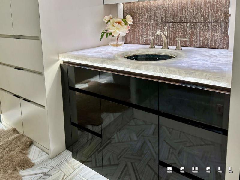 Corian top on dinettePremium quartz countertops at galley and buffet