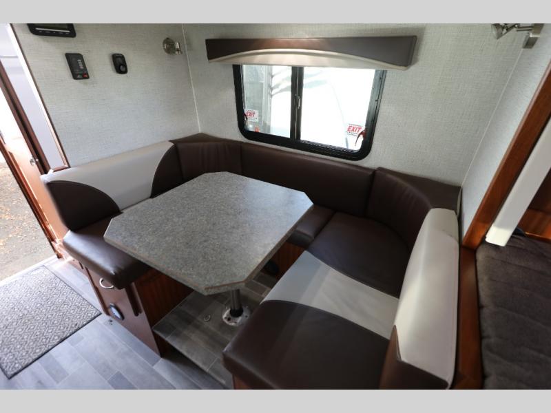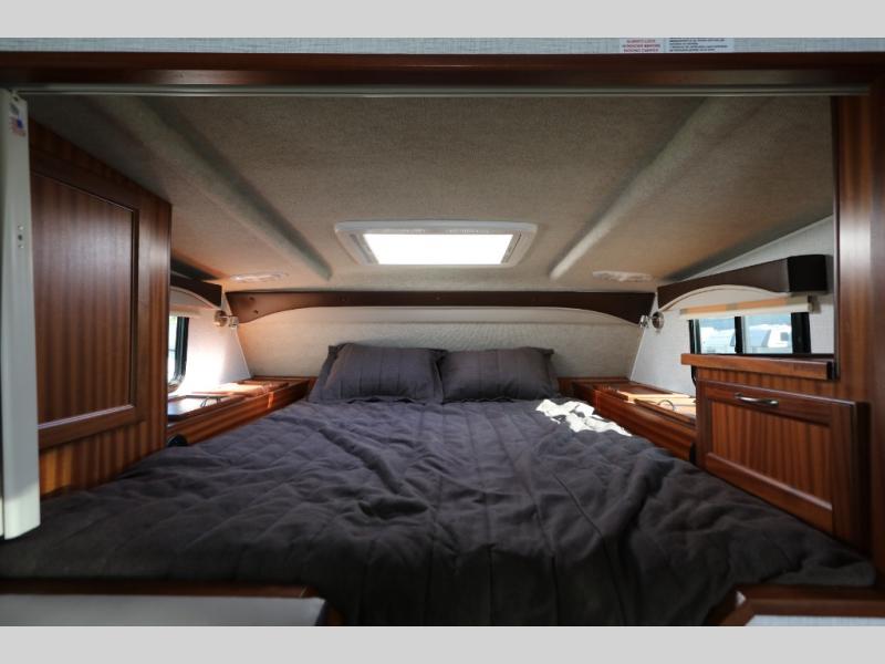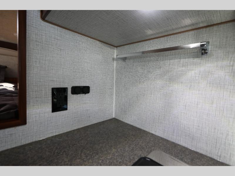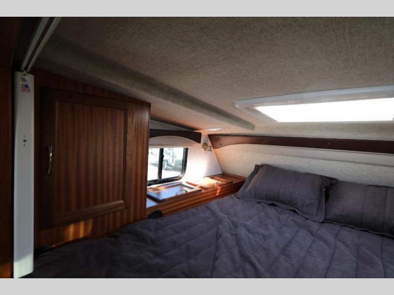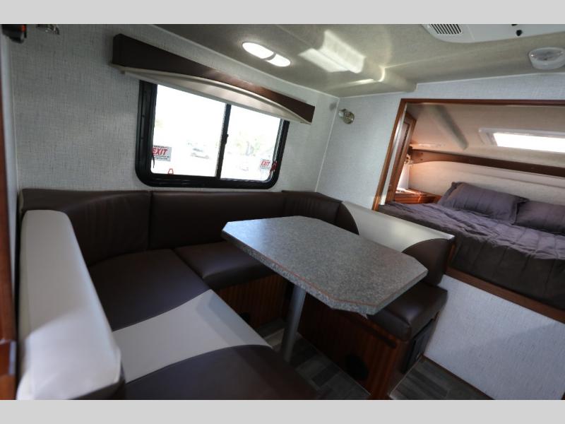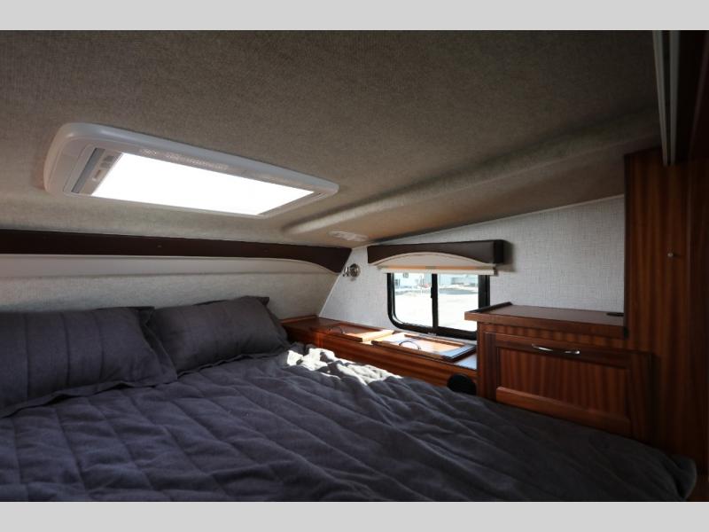 No matter what type of sportsman you are, this Sportsman Plus truck camper will enhance your fun! You will be able to go just about anywhere with your house following behind you in the cab of your truck, so whenever you get tired of hunting, fishing, hiking, or sightseeing, you can come back to relax on the U-shaped dinette with a hot meal made on the three-burner cooktop or a cold drink taken from the refrigerator. The wet bath is especially helpful because it allows you to use the restroom without having to search for a rest stop, and you can even take a shower too. There is an entryway closet to store your belongings, and there are also quite a few storage compartments up on either side of the queen-size bed.