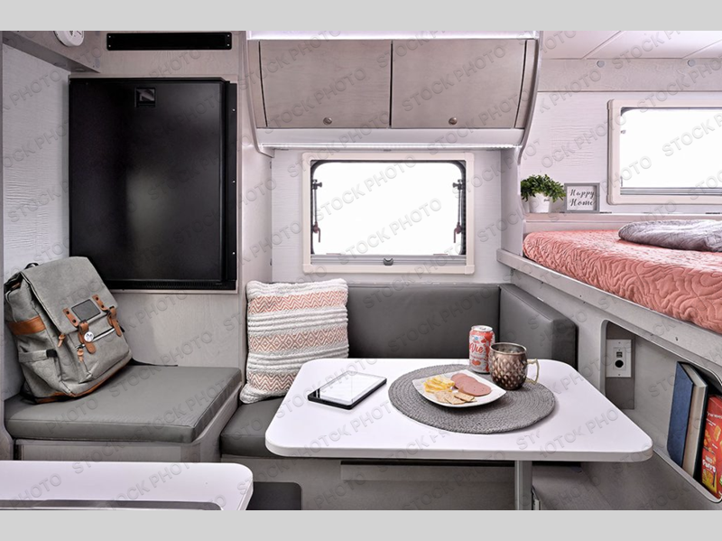 This Cirrus truck camper comes with a Froli sleep system which is a unique and innovative approach to a comfortable night of sleep. While you're sleeping on the bed, you can look through the stargazer window to appreciate the night sky. The dinette can easily be transformed into a second bed, and the sink, two-burner stove, and 4.6 cu. ft. 12V compressor refrigerator give you a place to prepare meals. This model also comes with an external LP hook-up, a Nautilus Water Management System, an exterior shower, and a dual battery compartment.