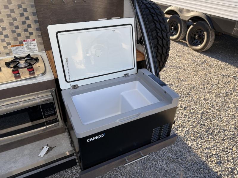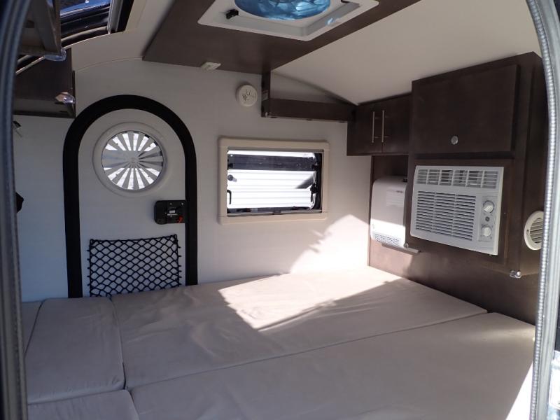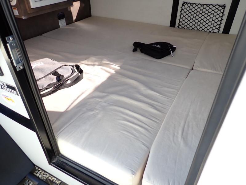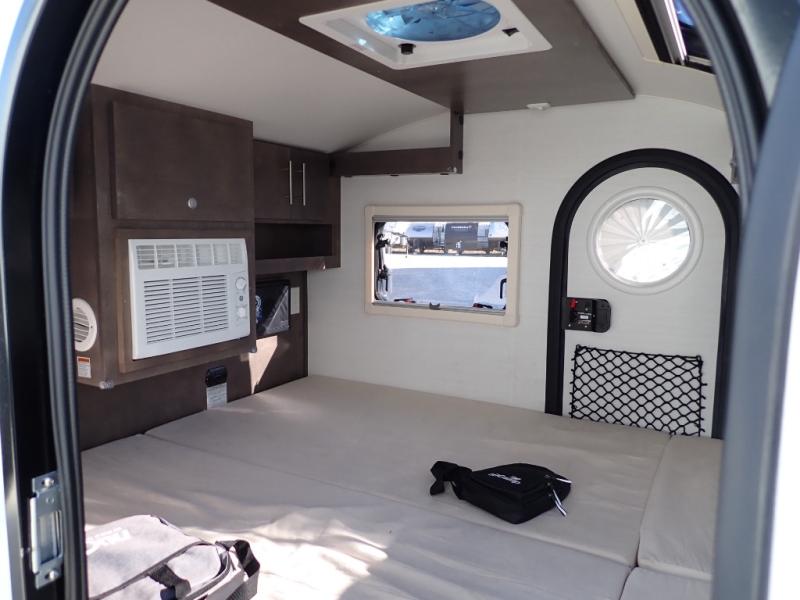 When you are looking to upgrade from a tent, this TAG XL Boondock might be your solution to outdoor fun with inside sleeping arrangements for two and an outdoor kitchen! You can enter from either side to enjoy your own queen-size bed as you look at the stars each night through the large front stargazer window. The interior also offers an air conditioner, under-bed storage, and cargo pouches for your belongings. The optional Black Canyon upgrade is available with this model that comes with an additional 120W solar panel, a water heater, holding tank heaters, under-glow lights, and a tri-fold multifunction mattress. Please note: the model specs on this unit represent the TAG XL Boondock model. If the optional Black Canyon upgrade is chosen, the tongue weight will be 194 lbs. and the gross dry weight will be 1,655 lbs. See dealer for more details!